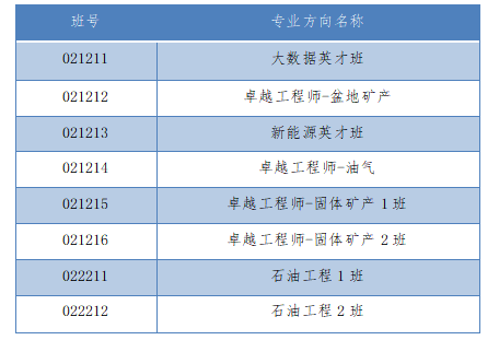 资源勘查工程专业分为固体矿产资源、油气资源、煤系资源、新能源、地学大数据方向,按基地班、卓越工程师班、英才班三种模式培养,工科基地班不参与本次专业方向确认。石油工程专业按卓越工程师模式进行培养。