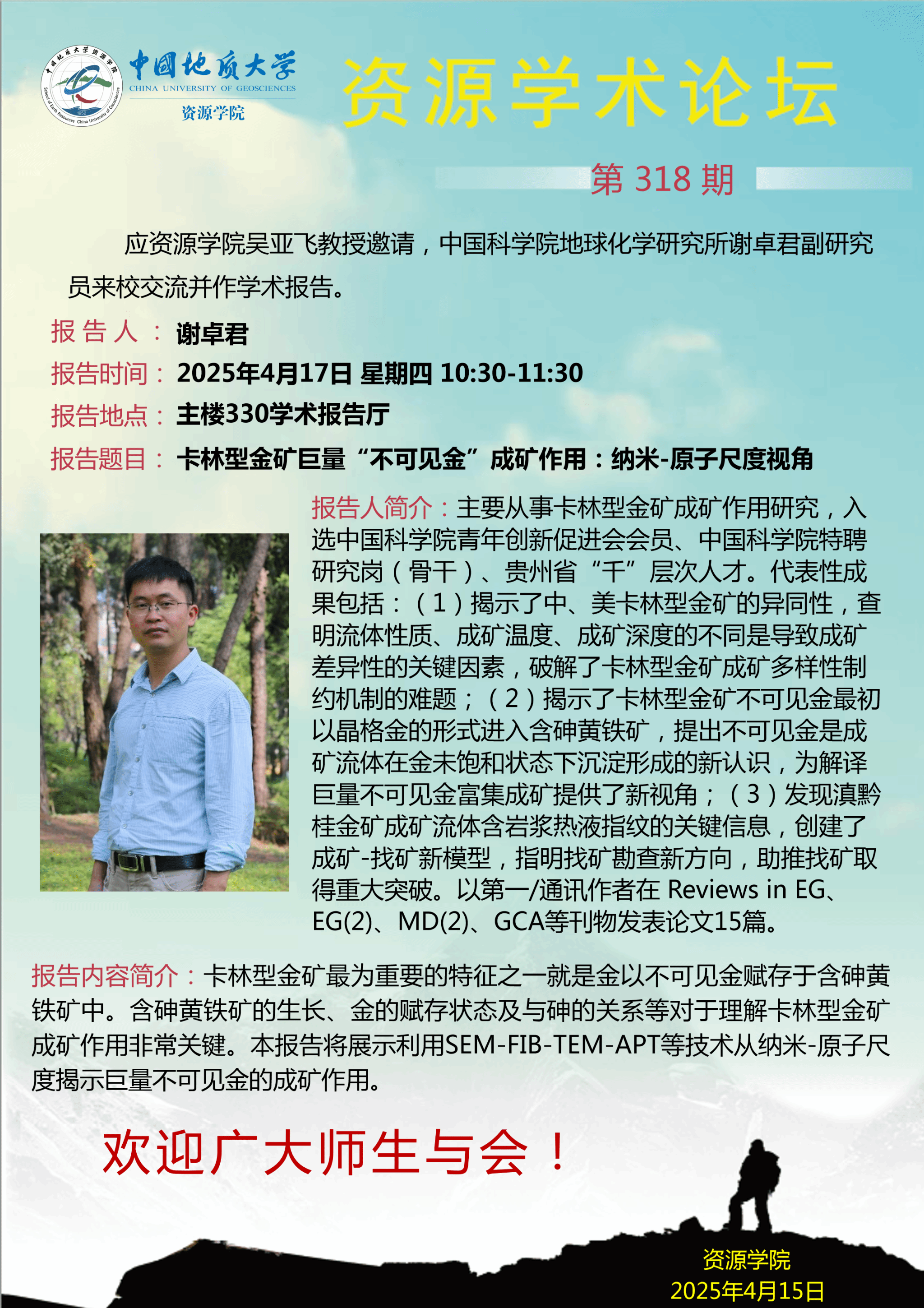 【4月17日】第318期资源学术论坛:谢卓君学术报告