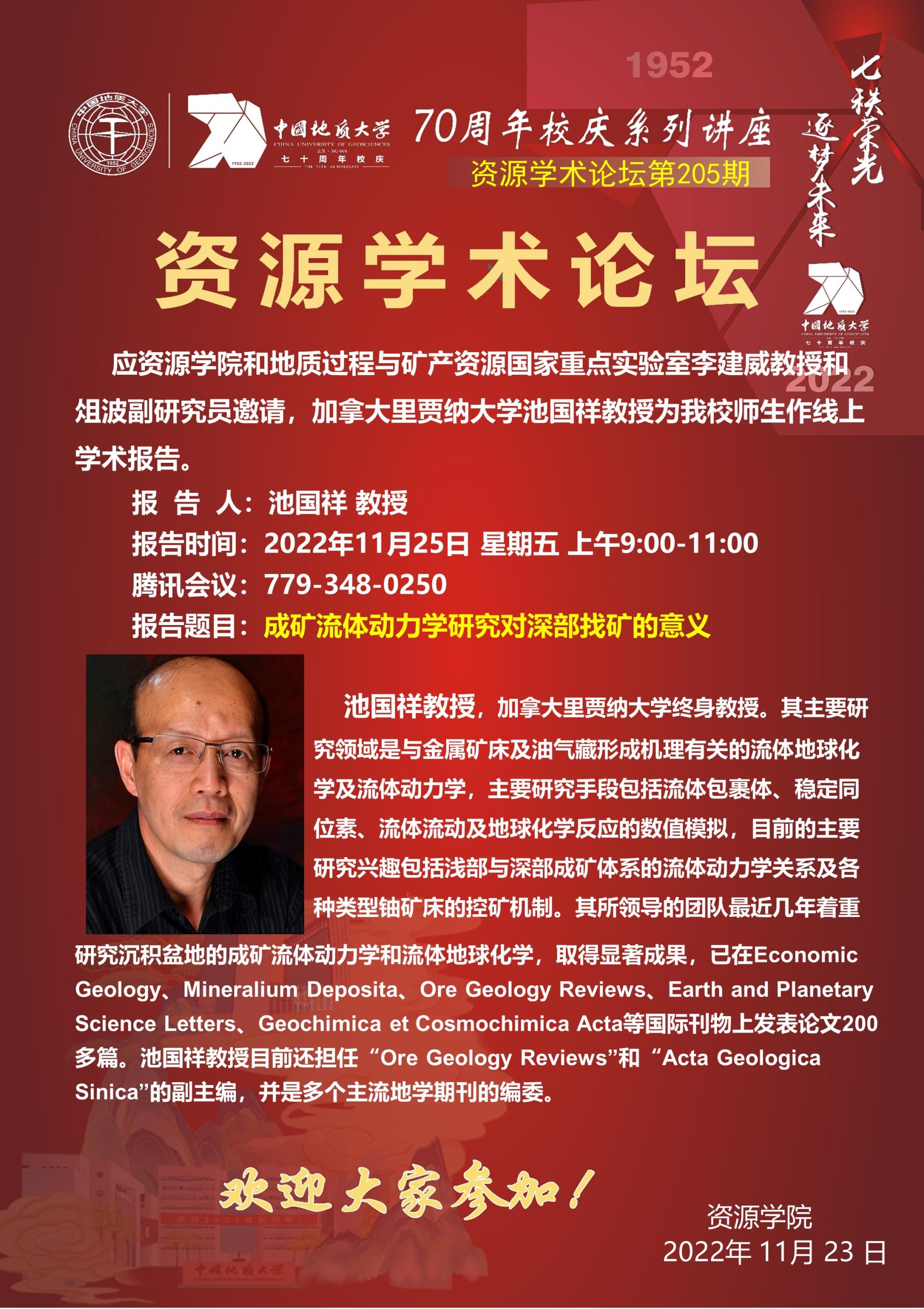 【11月25日】第205期资源学术论坛:池国祥学术报告