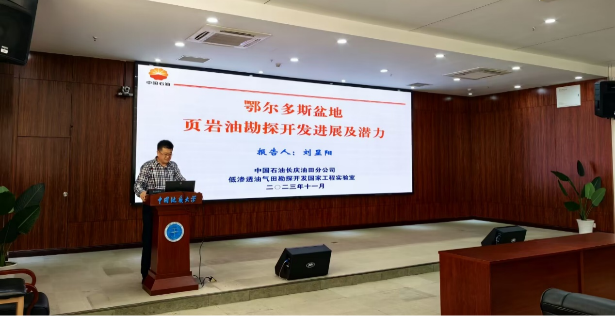 (通讯员 杜浩 摄影 董国宁)2023年11月8日下午,应副校长王华教授、Beat365中文官方网站石万忠教授邀请,中国石油长庆油田公司首席技术专家、中国地质学会非常规油气地质专委会学术委员刘显阳校友在东区综合楼A708会议室作了题为“鄂尔多斯盆地页岩油勘探开发进展及潜力”的学术报告。