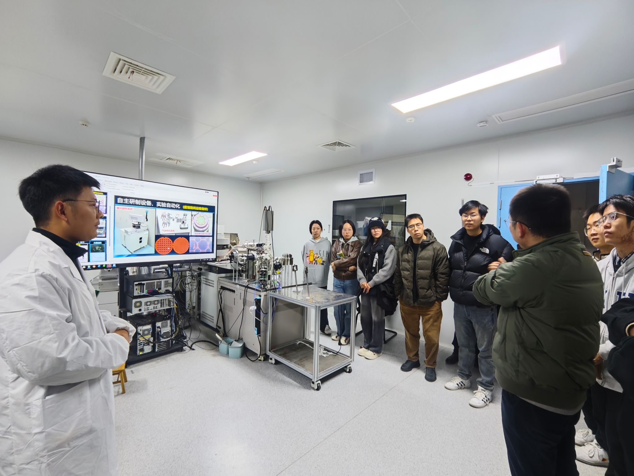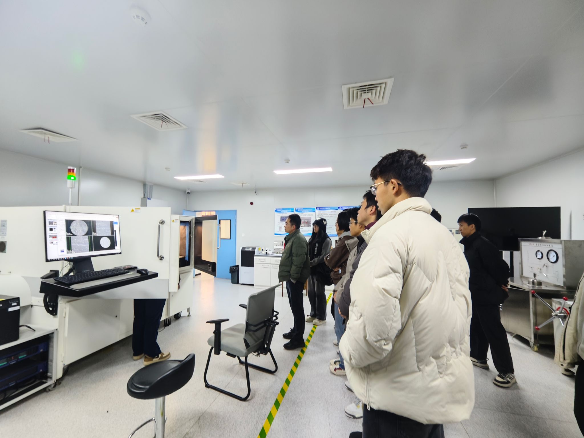 近距离接触高精尖科研设备,聆听一线科研人员的生动讲述,支部成员对抽象实验理论与复杂实验过程有了直观而深刻的理解。大家不时驻足观察、积极提问,在交流中感受严谨求实的科研氛围与协力创新的团队精神。