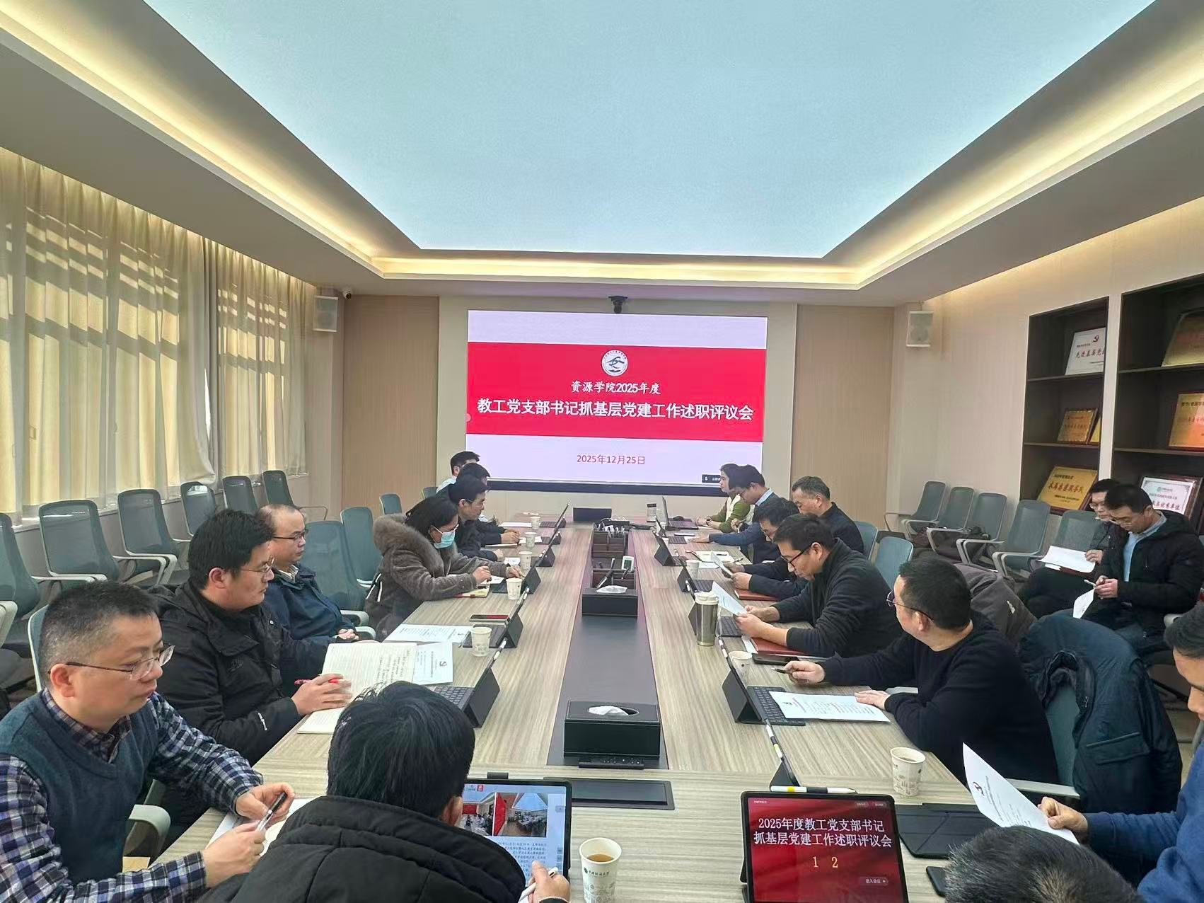 12月25日,Beat365中文官方网站党委召开2025年度教工党支部书记抓基层党建述职评议会,总结年度工作,交流经验做法、剖析问题不足,研讨2026年党建工作思路与举措。会议以线上线下相结合方式召开,学院全体领导班子成员、党委委员、三级单位行政主要负责人和教工党支部委员会全体委员参加会议。学院党委副书记谭文伦主持会议。