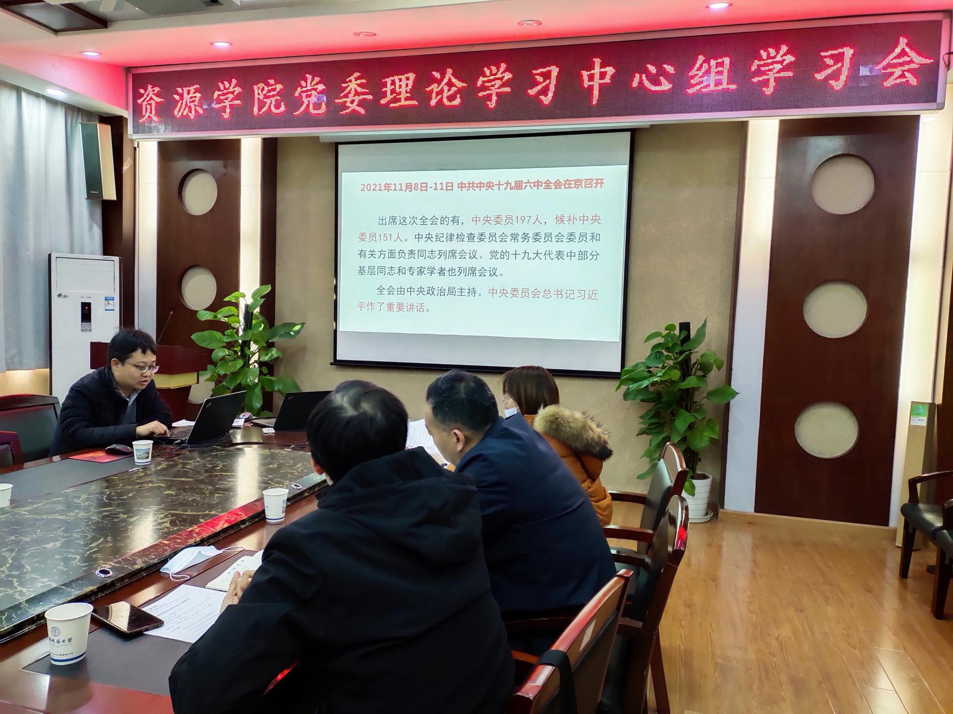 11月25日,Beat365中文官方网站党委理论学习中心组举行集体学习,传达学习党的十九届六中全会精神、习近平总书记在纪念辛亥革命110周年大会上的重要讲话精神和在中央人才工作会议上的重要讲话精神,部署了学院党史学习教育和师德师风建设等工作。院党委理论学习中心组成员、党史学习教育专题读书班成员参加会议,院办、工会、团委负责人列席会议。党委书记高复阳主持会议。