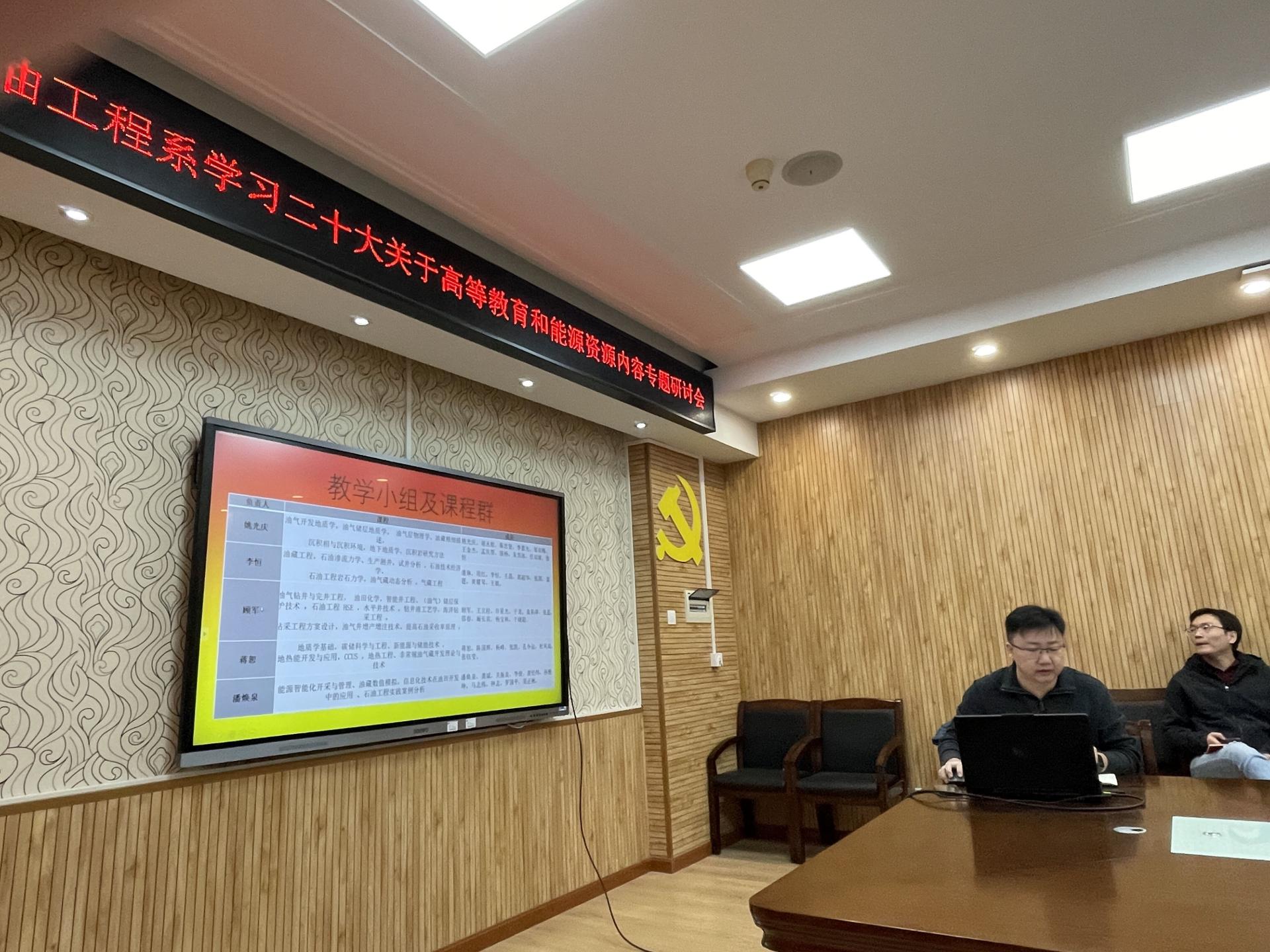 (通讯员:高旭东)深学细悟抓落实,立足本职建新功。11月24日上午,石油工程系在文华楼201召开学习党的二十大精神学习会,重点学习报告中关于高等教育和能源资源的相关内容。石油工程系全体教师、研究生党支部、本科生党支部学生代表参加会议。系党支部书记谢丛姣教授主持会议。