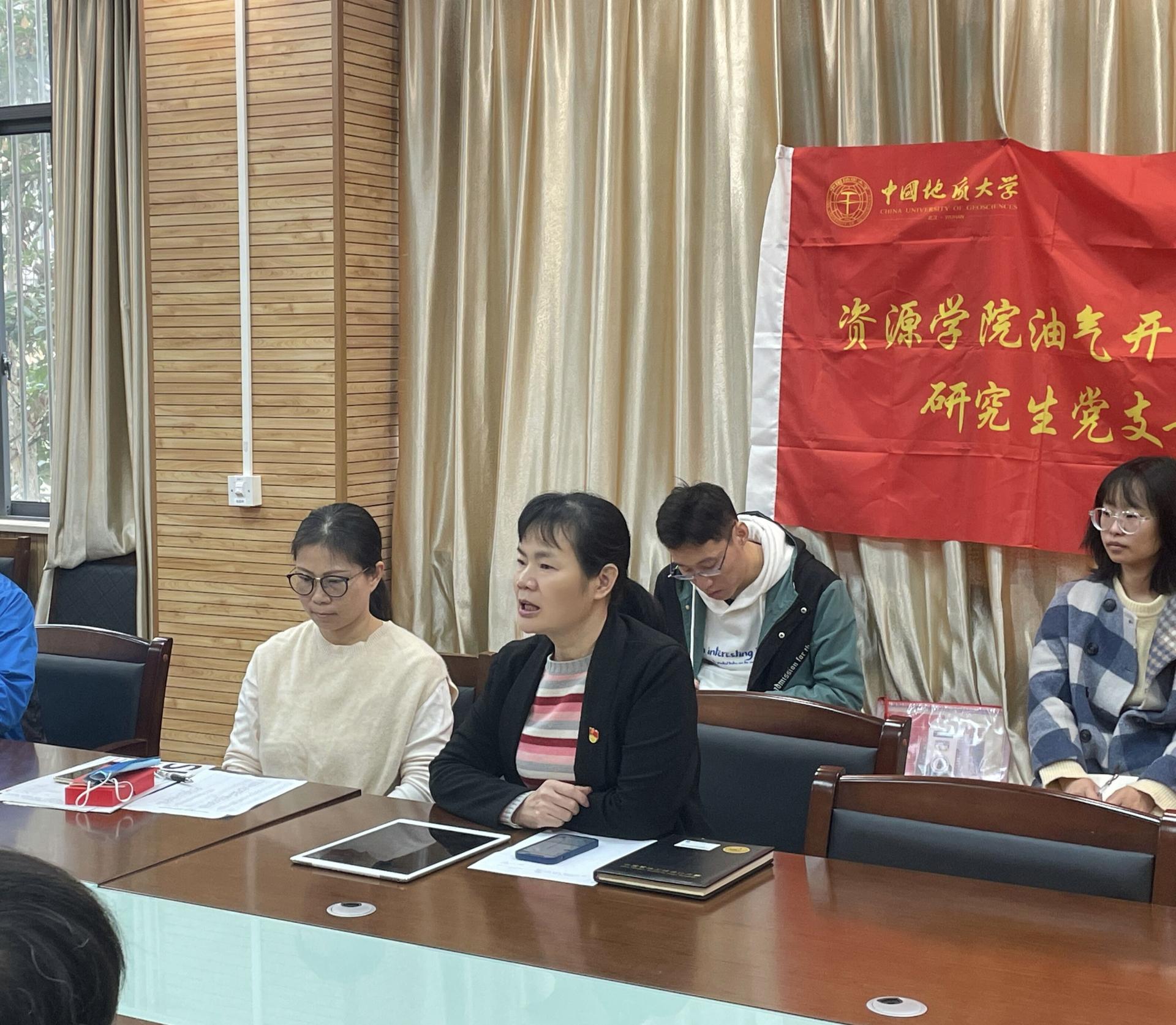 油气开发地质研究生党支部书记张阿芮、钻采工程研究生党支部李涛、本科生党员代表高旭东结合自己求学经历谈了学习党的二十大精神的感悟。他们说到,老师们对待教学计划精心准备、对待科研严肃认真、对待学科建设长远规划的态度令人印象深刻,并对本科课程实践环节的设置提出了建议。