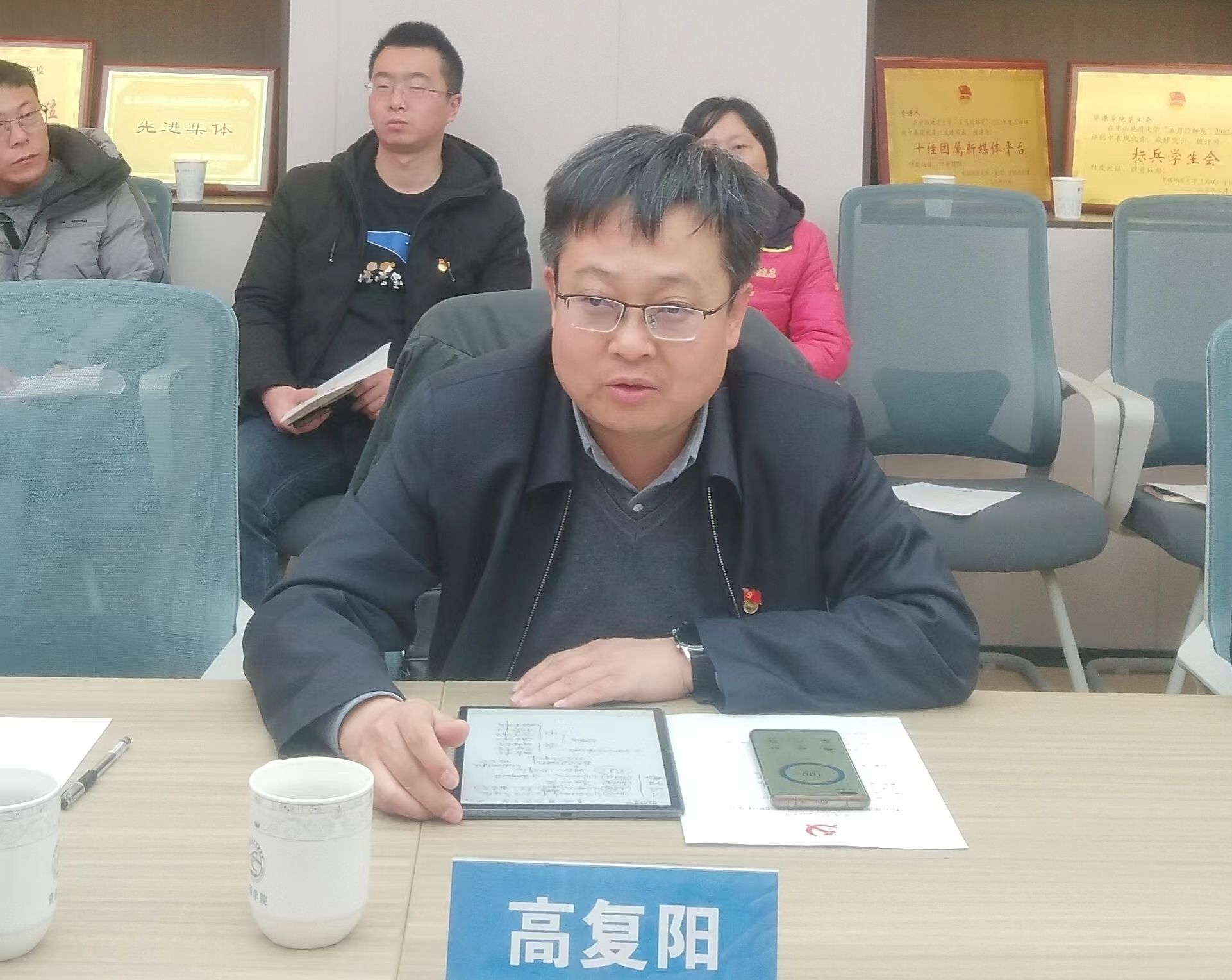 他谈到,基层党建的重要使命是引领和保障事业的高质量发展,要紧紧围绕“七个有力”建强党支部,发挥好政治引领和组织保障作用,和行政班子齐心协力、凝心聚力落实好三级单位的教学科研、人才培养、科技创新、行业服务、国际交流等工作。基层党建的基本方法是“一融双高”,要立足学科学院特点,围绕事业发展目标,深化对“高的内涵?融的路径?”的思考与探索,加强对理念创新、机制创新、实践创新的探索,全面加强党的建设,努力提升党建工作水平,引领和保障事业高质量发展。要坚持“品质+品牌”,坚持“党建与业务联融共促”,以地质找矿先进事迹报告会、校企党建联建共创等为抓手,夯基础、强特色、树品牌,促进党支部建设特色化、品牌化。要不断加强师德师风宣传教育,完善政治理论学习体系,引导全体教师从教书育人和科技报国两个方面发挥更大作用。