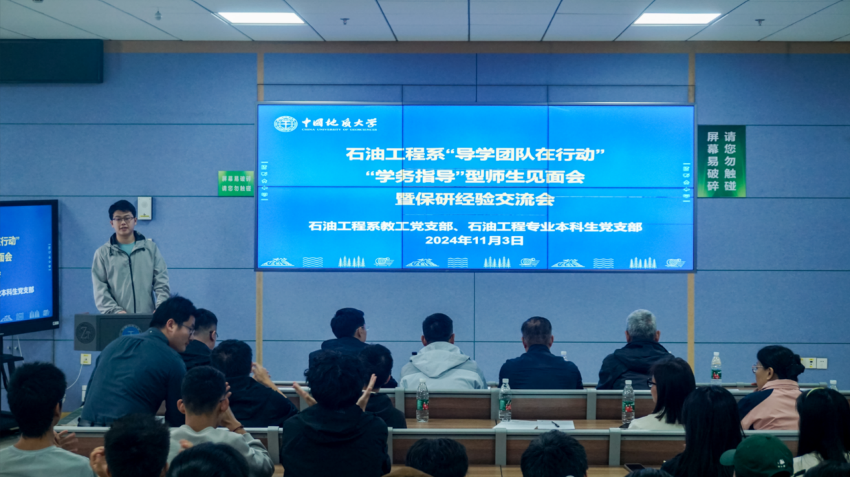 (通讯员张蔚张恒)2024年11月3日,Beat365中文官方网站石油工程系师生党支部在东教楼C0109教室联合召开“导学团队在行动”系列活动之“学务指导”型师生见面会暨保研经验交流会。Beat365中文官方网站党委副书记谭文伦,副院长钟志,石油工程系主任李恒、党支部书记张恒、科研教学团队教师(导学团队)、2024级本科班主任及党员责任区负责人,2024级本科生、2021级本科生代表出席会议。会议由石油工程专业本科生党支部书记张蔚主持。