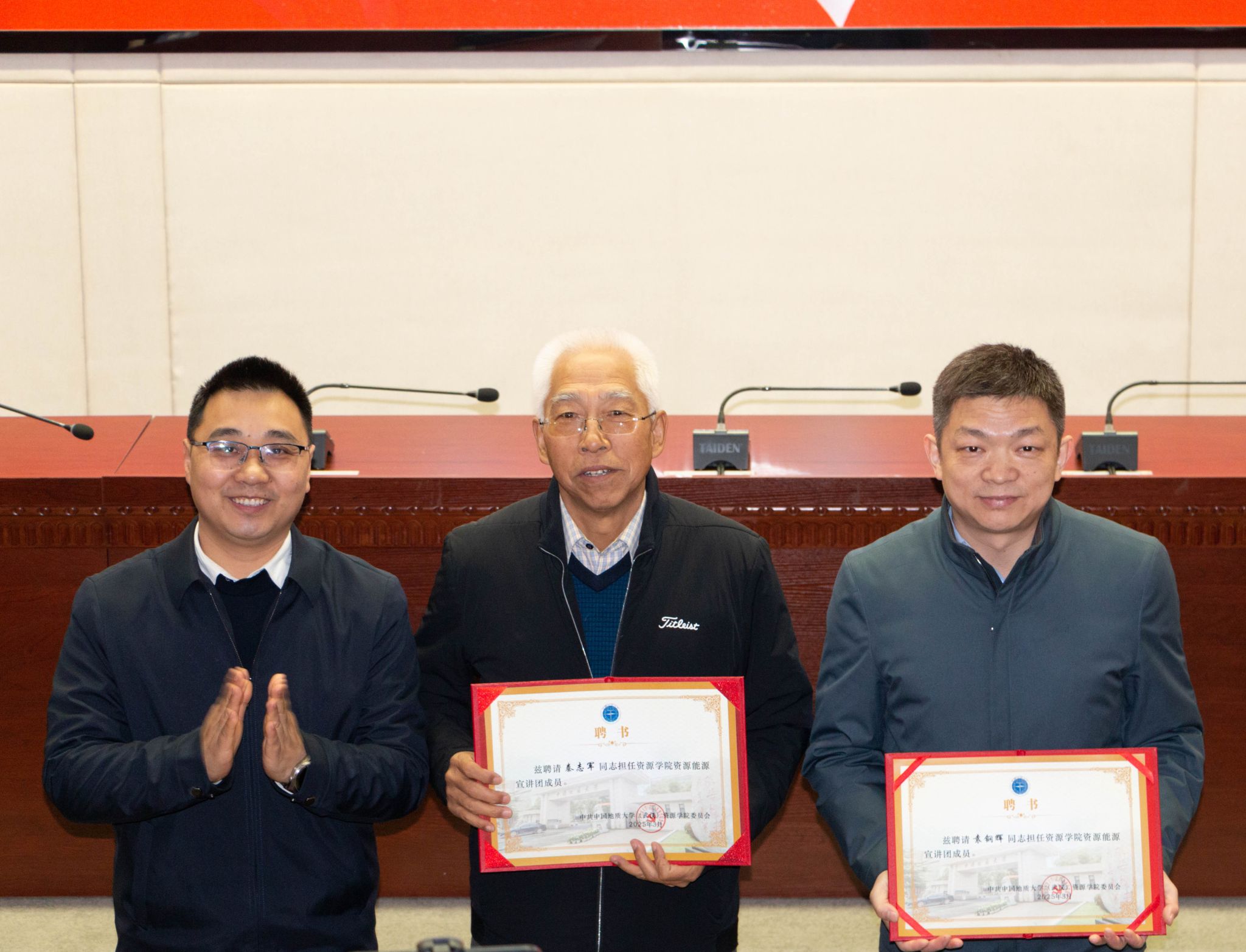 Beat365中文官方网站党委书记汪再奇为秦志军董事长和袁钢辉总经理颁发Beat365中文官方网站产教融合企业导师聘书与资源能源宣讲团聘书。