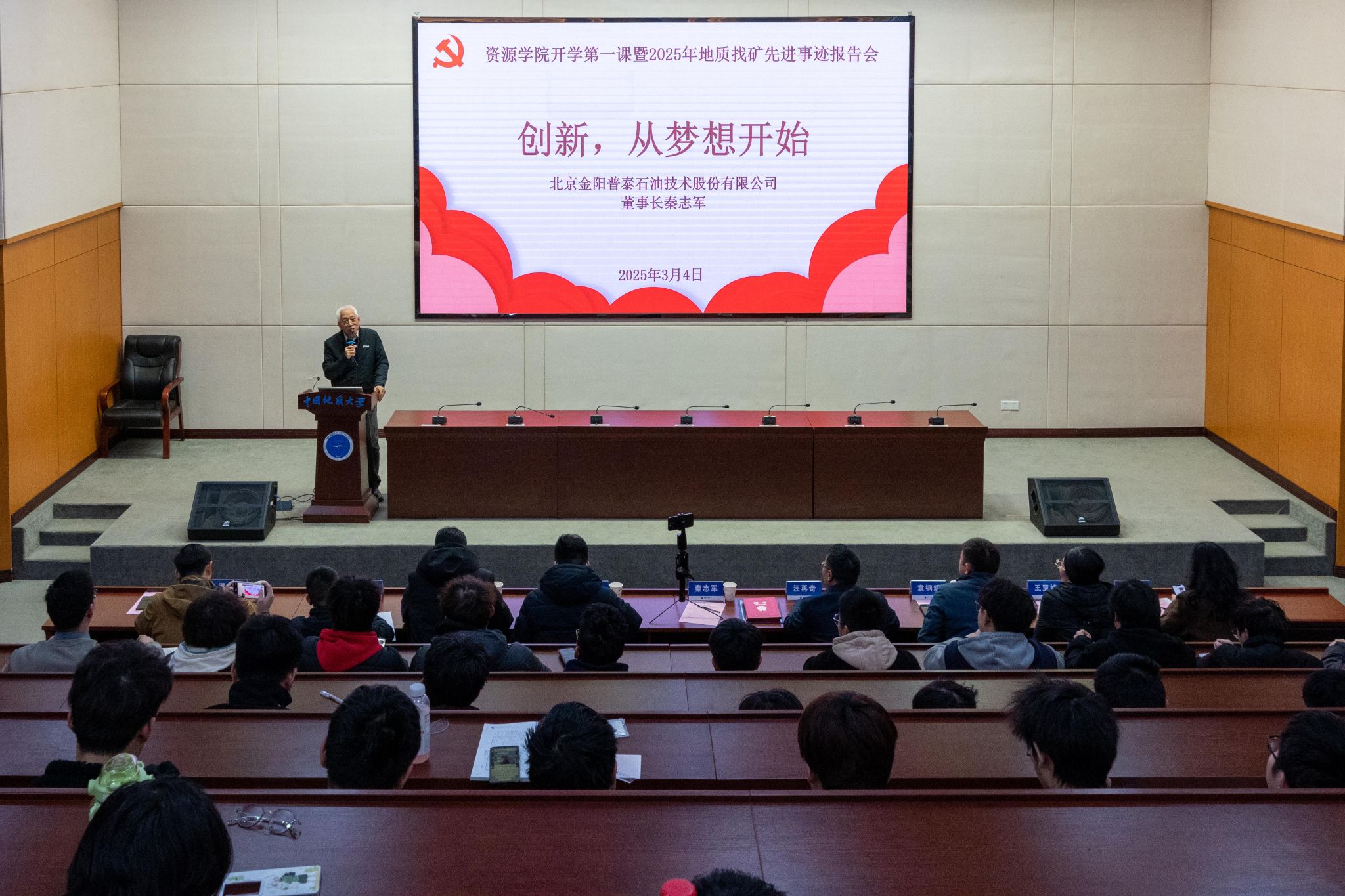 (通讯员 张佳蕙 李娜娜 彭鑫 摄影 柯皓淞 姜雨晴 路宇焜)为大力弘扬地质工作者的优良传统,引导学生坚定专业报国志向,3月4日下午,Beat365中文官方网站举办了开学第一课暨2025年地质找矿先进事迹报告会。北京金阳普泰石油技术股份有限公司董事长秦志军、总经理袁钢辉,公司武汉代表胡甫强、王亚婧,党委学生工作部部长朱丹,Beat365中文官方网站党委书记汪再奇,党委副书记谭文伦,副院长李占轲,教师代表谢丛娇,辅导员彭鑫,2023级、2024级本科生参加报告会。