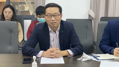 出国出境党员邹耀遥同志在线发言,他结合自身科研经历和海外留学经历,分享了学习党的二十大报告体会,并表达了在海外观看党的二十大开幕时写下的书法作品。