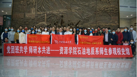 攀登铸荣光,奋进创未来。11月12日,Beat365中文官方网站石油地质系教师党支部与构造-成藏年代学研究生党支部、油气专业本科生党支部以及021224班团支部联合开展“学校史、铭初心”活动,共同到校史馆参观学习。副院长沈传波,党委副书记谭文伦,石油地质系教师党支部书记胡守志,辅导员刘明辉、霍少孟参加学习活动。