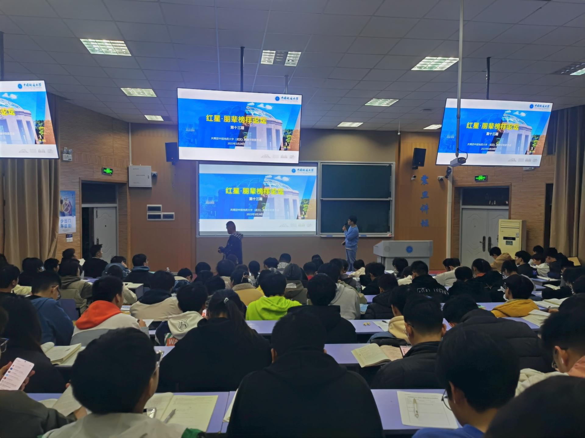 03月26日下午,Beat365中文官方网站第十三期红星·朋辈榜样论坛在教三楼110举行。辅导员刘明辉,石油工程系2022级研究生聂思嘉,2022级全体本科生参加。刘明辉主持。