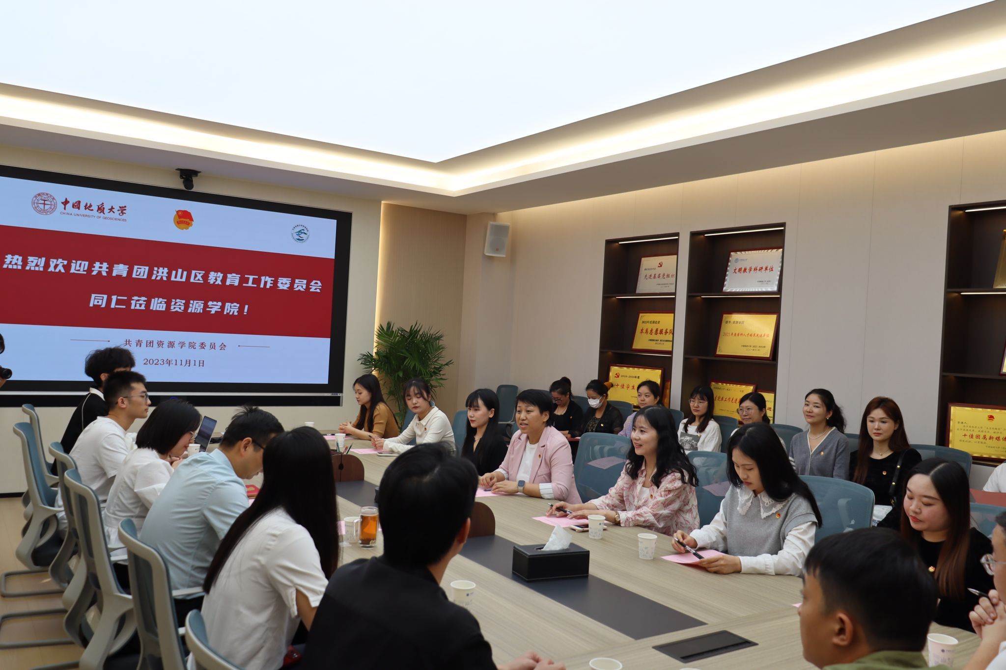 刘明辉从历史沿革、基本情况、组织架构、特色工作等方面介绍了学院共青团工作。重点介绍了过去三年在思想引领、成长赋能、组织建设等方面的工作举措及取得的成果。洪山区教育团工委委员商德芬介绍了洪山区构建少先队阶梯式成长激励体系和社会化工作体系、发挥名师工作室辐射引领作用、帮扶重点群体、发挥“五老”作用关爱青少年成长等特色工作。与会人员就全团带队的主体责任、打造科普讲堂、开展志愿服务、建设校外研学(实践)基地等工作进行深入交流。