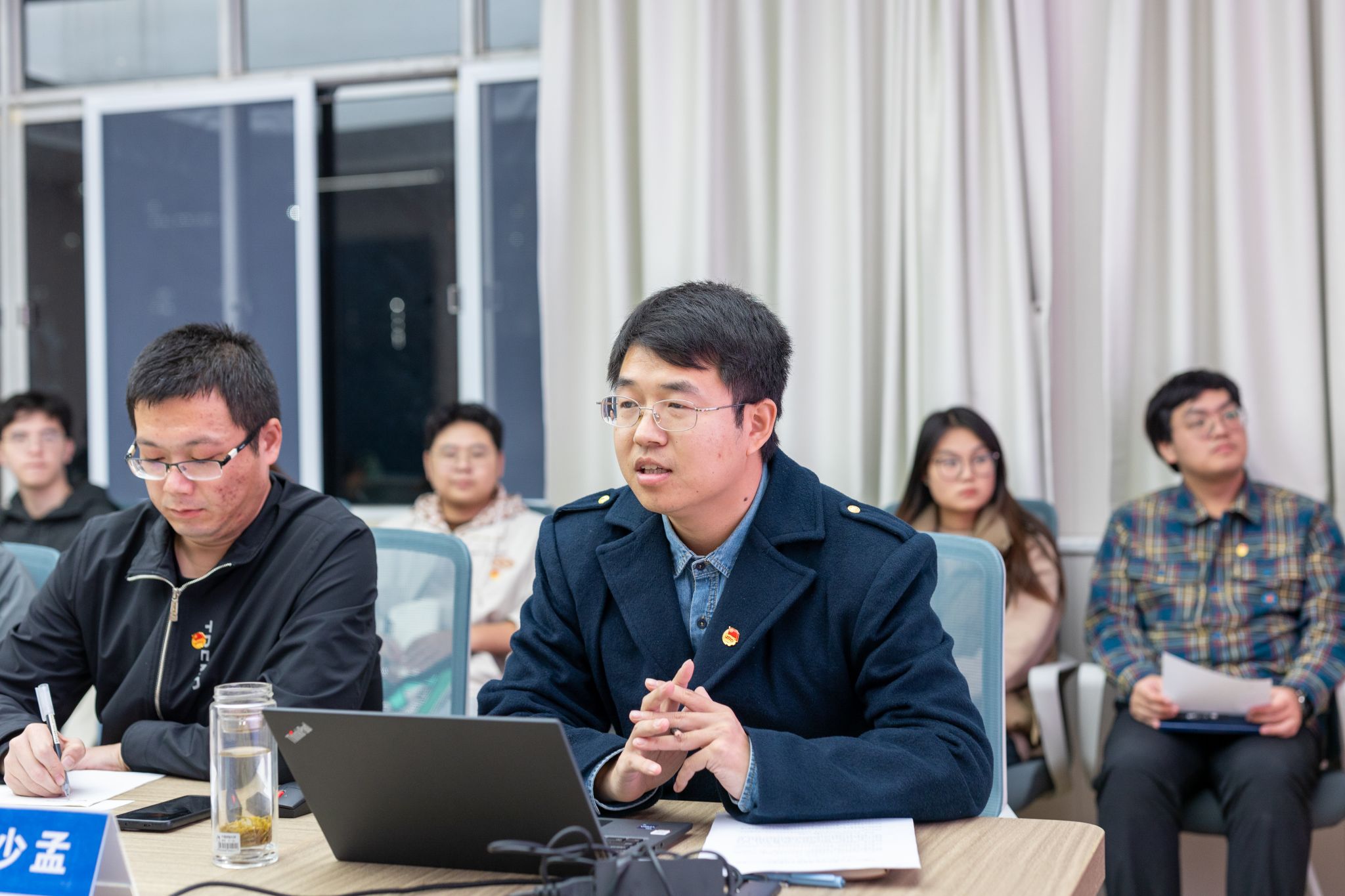 团委书记刘明辉介绍学院共青团工作。她指出,过去几年,学院共青团重点围绕学生专业思想引领、学风建设、科创实践、科普宣传、志愿服务等方面做了大量工作,取得了一定成效。面临新形势,学院团委在完善红星思想引领体系和创新创业工作体系、加强基层组织建设和宣传文化工作方面还存在进一步改善的空间,希望全体团学骨干群策群力,共同破解制约学院共青团发展的重点难点问题,以坚定的改革不断增强团的政治性、先进性、群众性。