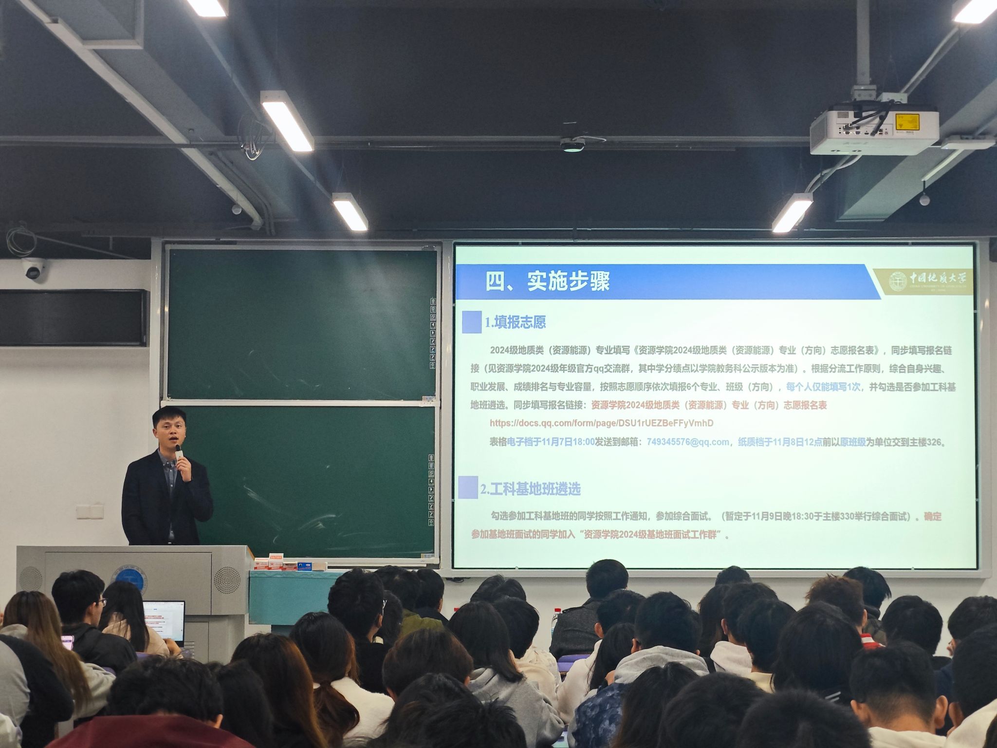 叶加仁作总结发言。他谈到,资源勘查工程作为全国排名第一的一流本科专业,为同学们成长成才奠定了坚实的基础。他鼓励同学们,在选择专业(方向)时,要结合自身专业研究兴趣、未来职业发展等因素,更要做好专业分流的“后半篇文章”,刻苦学习专业知识、锤炼专业技能,努力成为资源能源领域拔尖创新人才。