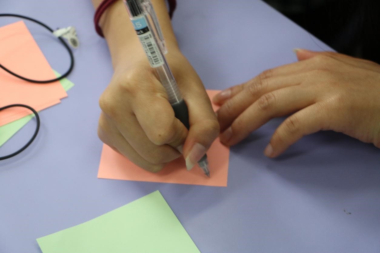 随后每一位同学都在便签纸上写下了自己的大学奋斗目标并以此勉励自己。