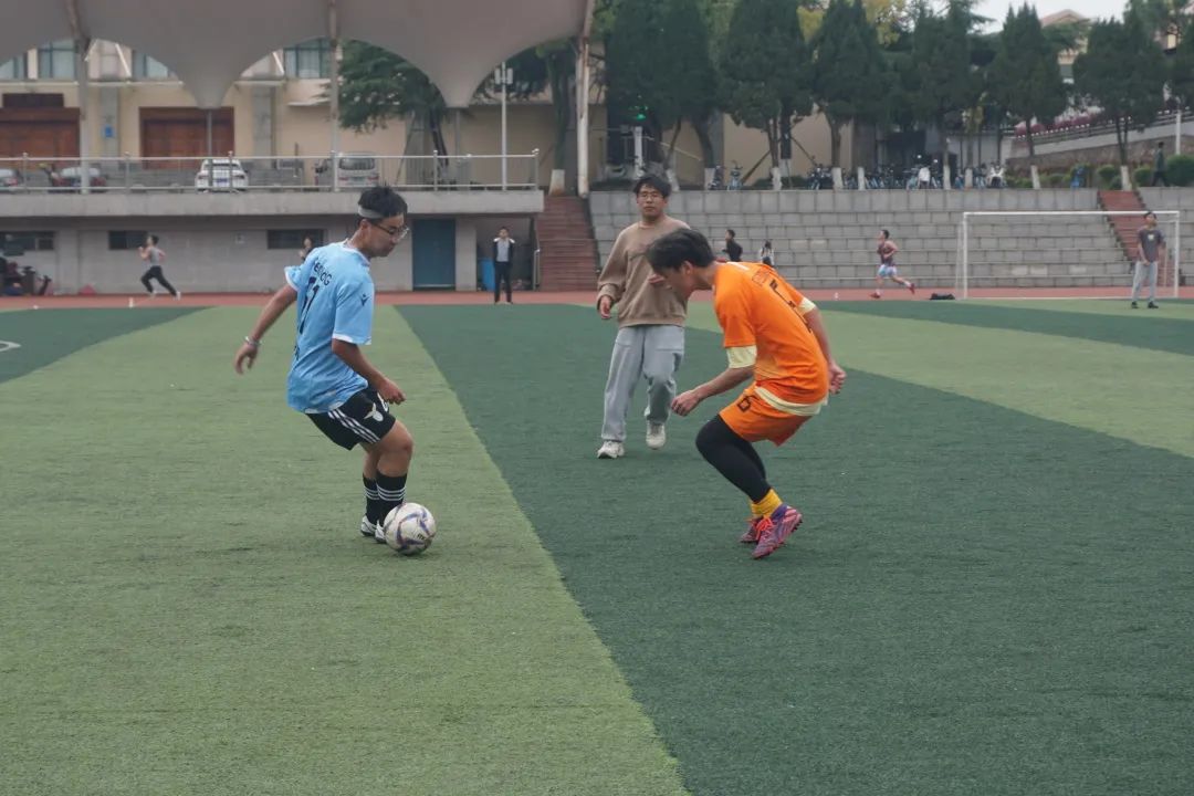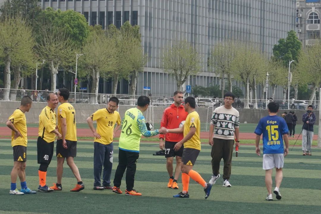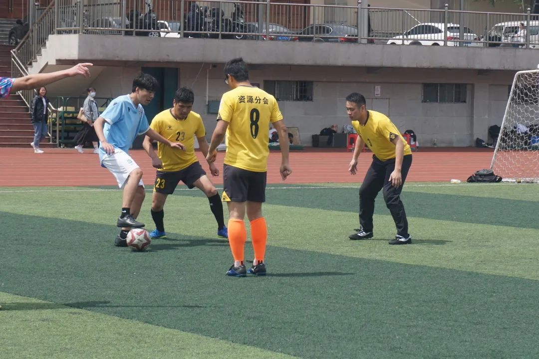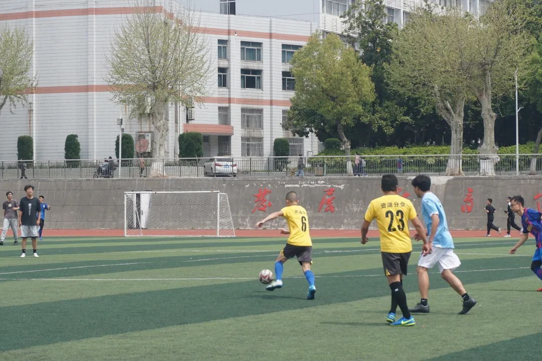 三月的尾巴,虽然有淅淅沥沥的春雨,但资源er和教师们的足球对抗足够称得上是雨后彩虹,将沉闷的天气一扫而光。比赛中有“银鞍照白马,飒沓如流星”的长途奔袭;有“桃花影落飞神剑”的大力抽射;也有“中流砥柱、舍我其谁”的后卫防守;有稳定军心、终结进球的门神扑救。当然也少不了“绝对公平公正”、“绝不漏判任何一次犯规”的裁判们,以及场下或欣然庆祝、或泪洒绿茵的球迷们。足球就是如此,一方的欢喜衬托着另一方的忧伤。但无论输赢,情绪在上场这一刻得到充分地体现和释放。这就是足球,这也是为什么我们如此深爱着足球这项运动的原因。所有的参与者,都在这片绿茵赛场上书写着属于自己的青春拼搏赞歌。