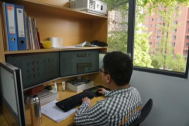 科研办公环境整洁明亮,生动温馨,入门便是宽敞的大厅,抬头就是清新喜人的绿植,开窗即见生机盎然的自然。