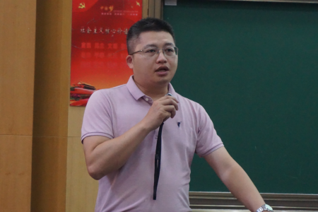 霍少孟老师在主持时对因疫情暂缓返校学生实习任务安排、实习宣传工作、防疫防暑和安全注意事项进行说明。
