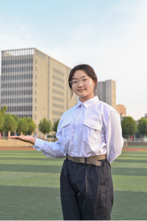 文学社社长,播音写作,她是文学世界翩然的蝴蝶,拿过市级诗歌特等奖,最爱停留。民族舞,古筝绘画,在舞台上肆意舞动,她是清风明月下的那一抹翩跹,自作惊鸿。驰骋短跑赛场,羽毛球跆拳道,在大庆原野追风,骄阳之下,她带起那份少年的执拗,惊动丁香;生活委员,主持人社社员,在学习、工作、训练上一丝不苟,一件一件、一茬一茬,在追梦道路上埋头奋进。