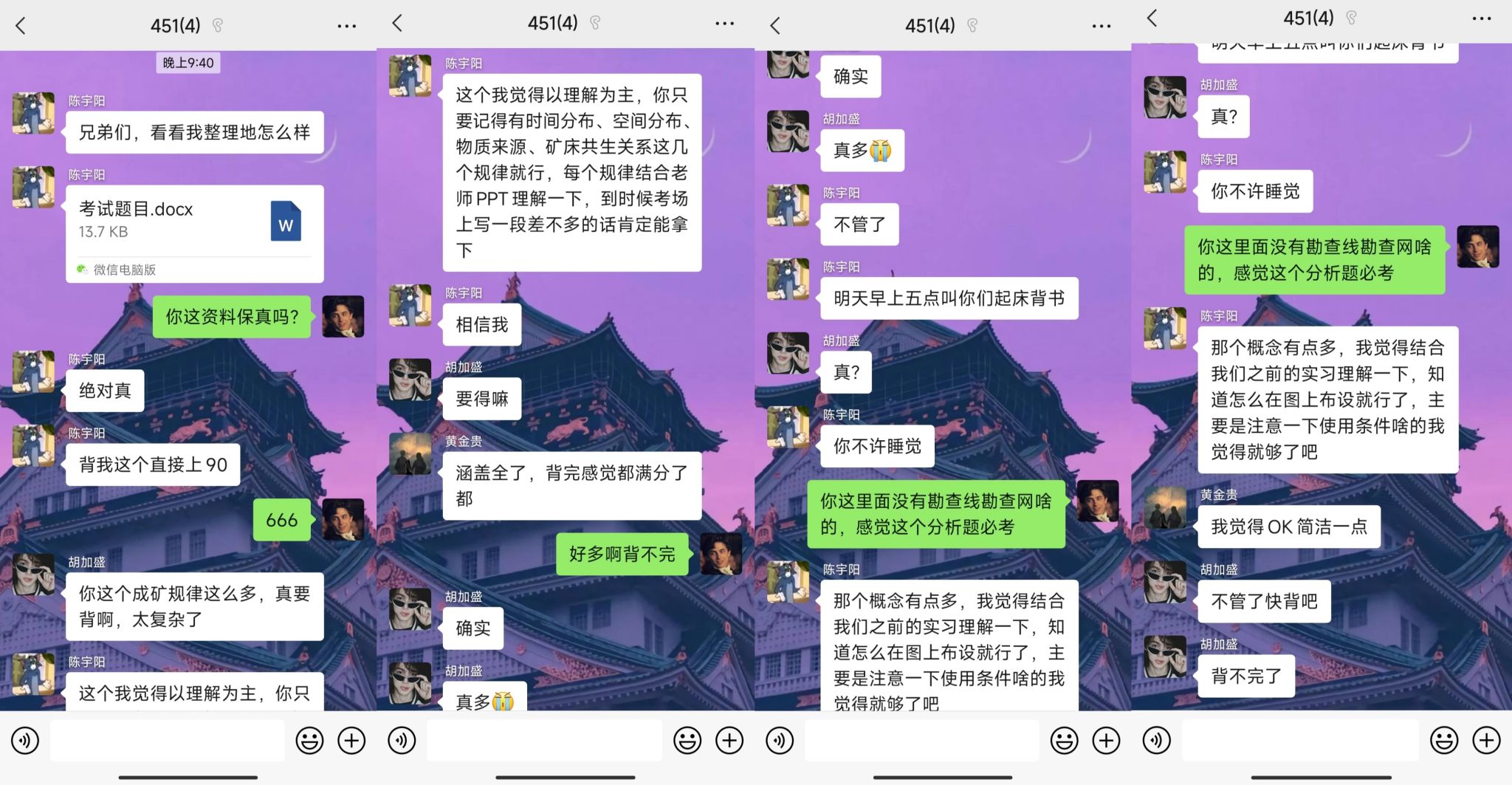 成员们互相分享搜集到的考试情报和平时的学习笔记