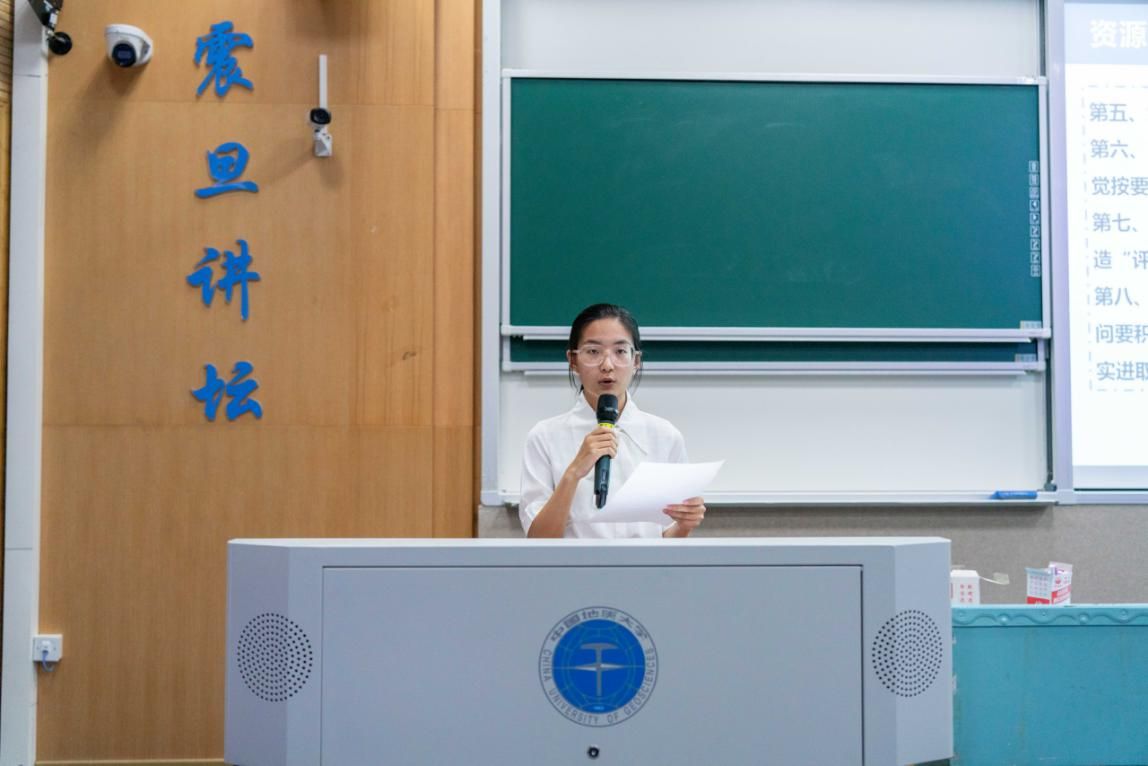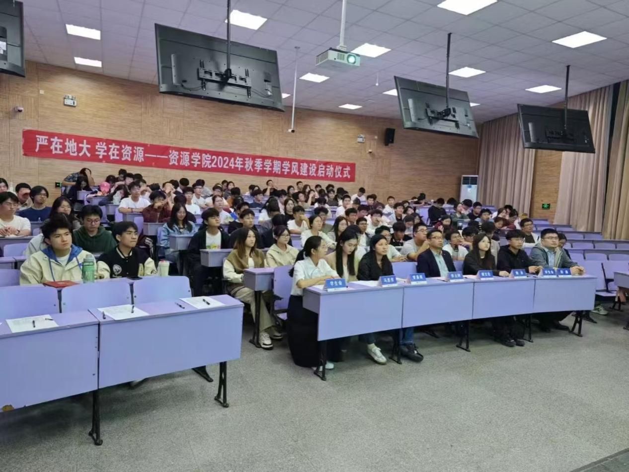 仪式最后,学院党委副书记谭文伦讲话。他表示,“严在地大,学在资源”是学院持续多年的学风建设品牌,希望同学们明确学习目标,养成良好习惯,自觉遵守校纪校规,以审核评估工作为契机,主动投入到优良校风学风的建设当中,以优异成绩迎接本科教育教学审核评估。