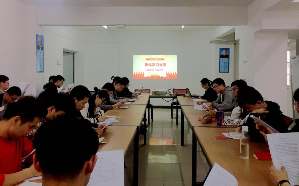主题党日在庄严的国歌声中拉开序幕,全体党员齐唱国歌、重温入党誓词、集体学习党章、缴纳党费。油气专业本科生党支部的魏超同志带领与会党员学习了党章第七章——党的纪律。在全体与会党员齐声诵读党章的相关章节后,魏超同志就党的纪律及纪律处分等内容进行了详细的解读,并结合《习近平关于严明党的纪律和规矩论述摘编》一书和《政治纪律最重要》一文进行了补充讲解。