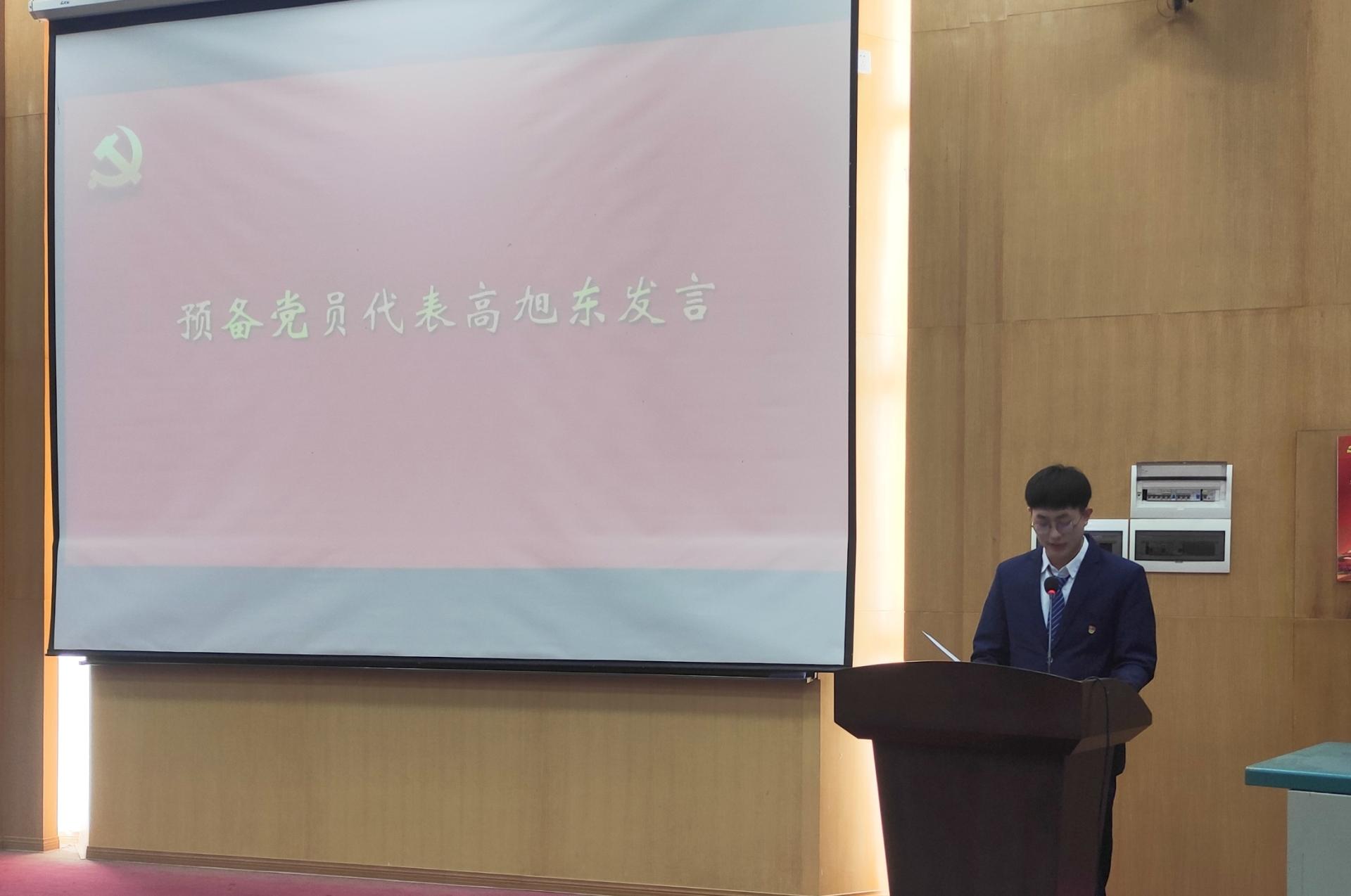 高旭东分享了在党组织培养考察中不断端正入党动机、以实际行动积极向党组织靠拢的过程,分享了在党史学习教育中的所学所悟。他表示,将以党员的标准严格要求自己,以实际行动践行“请党放心,强国有我”的铮铮誓言,夯实专业本领,积极投身资源能源强国事业,与无数青年党员一起接过时代旗帜,做更好的答卷人。