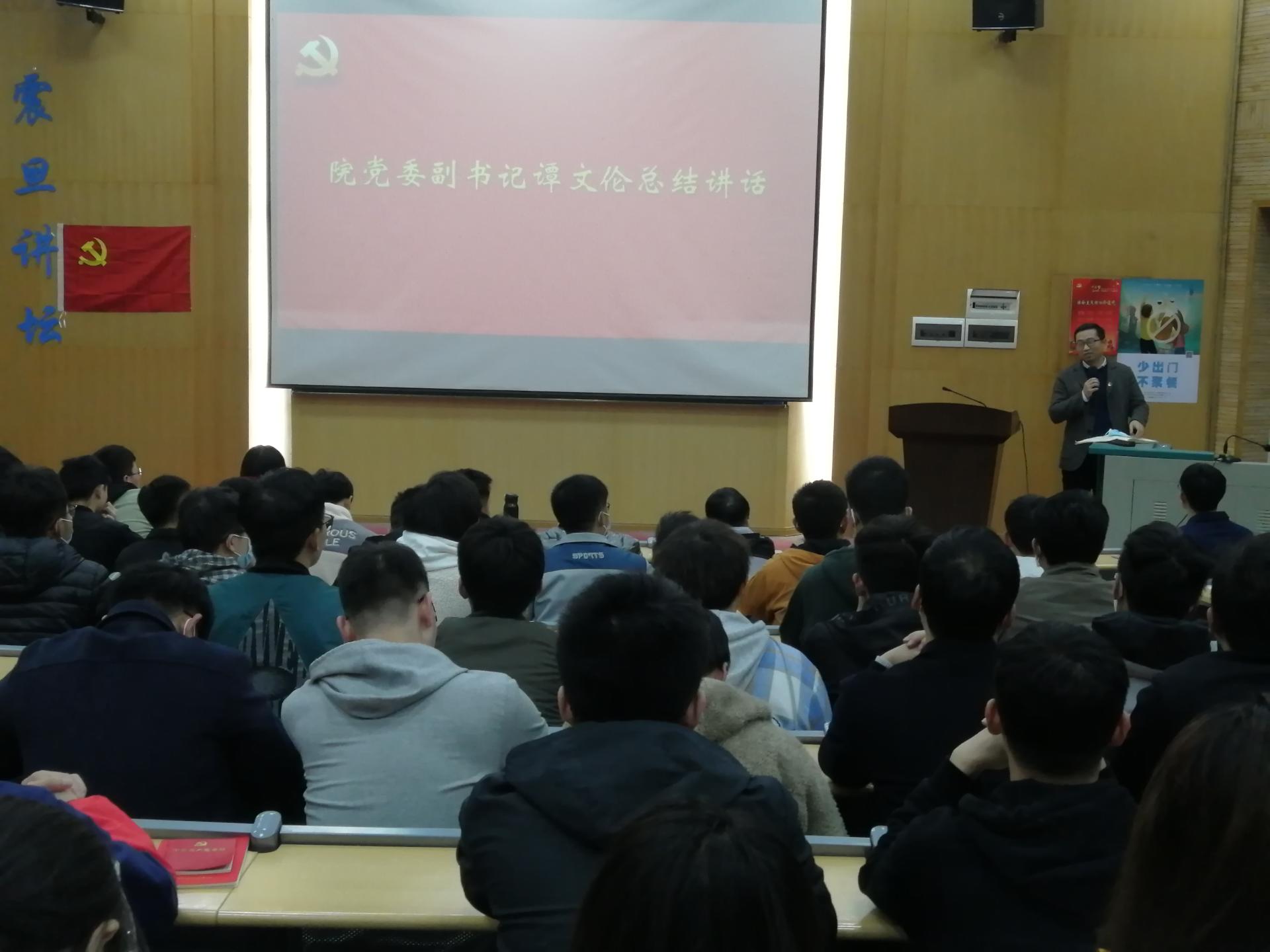 霍少孟作了学院学生党建工作报告。他介绍了学院学生党建工作整体概况、运行机制,通报了学生党支部党史学习教育进展和学生党员岗位设定情况,指出了学生党建工作取得的基本成效和当前存在的问题。他重点结合“五个到位”和“七个有力”,详细介绍了学院党委着力“五个聚焦”打造高质量党建工作体系的总体思路和建设方案,解读了学生党建“三三三三”建设机制:即通过推进“三大工程”、构建“三大体系”、打造“三支队伍”、培育“三种文化”,进一步强化党支部政治功能,全面推进标准化、制度化建设,结合学科学院学生实际培育党建特色品牌项目,进一步激发学生党支部的战斗堡垒作用和学生党员的先锋模范作用。