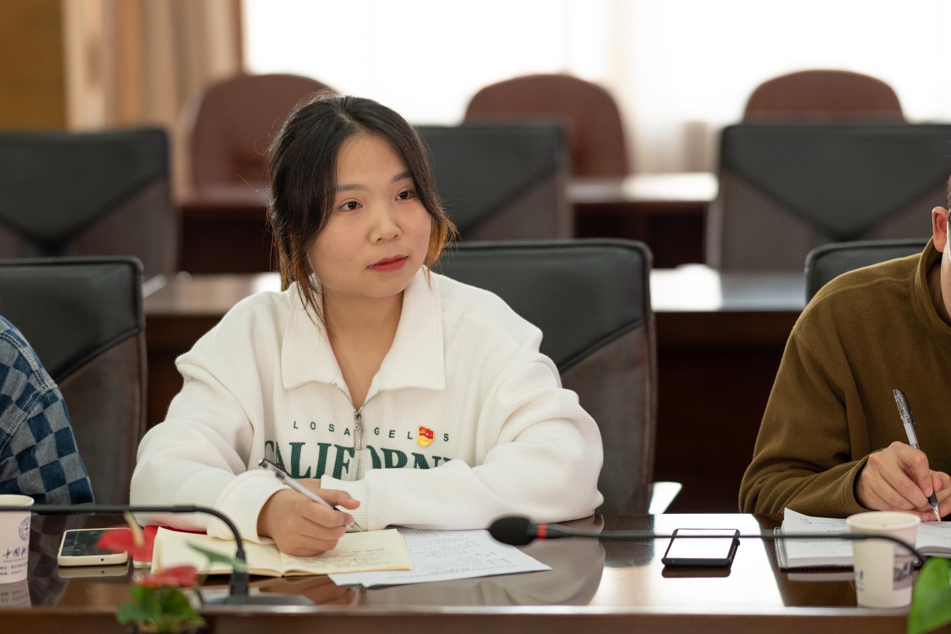 学生党员胡强、李帅平两位同志分享学习心得。他们表示,将践行初心,肩负使命,为国家资源能源事业发挥更大“资源人”作用,将地大精神传承发扬在祖国大好河山,在地质工作中实现人生价值,成就非凡梦想。