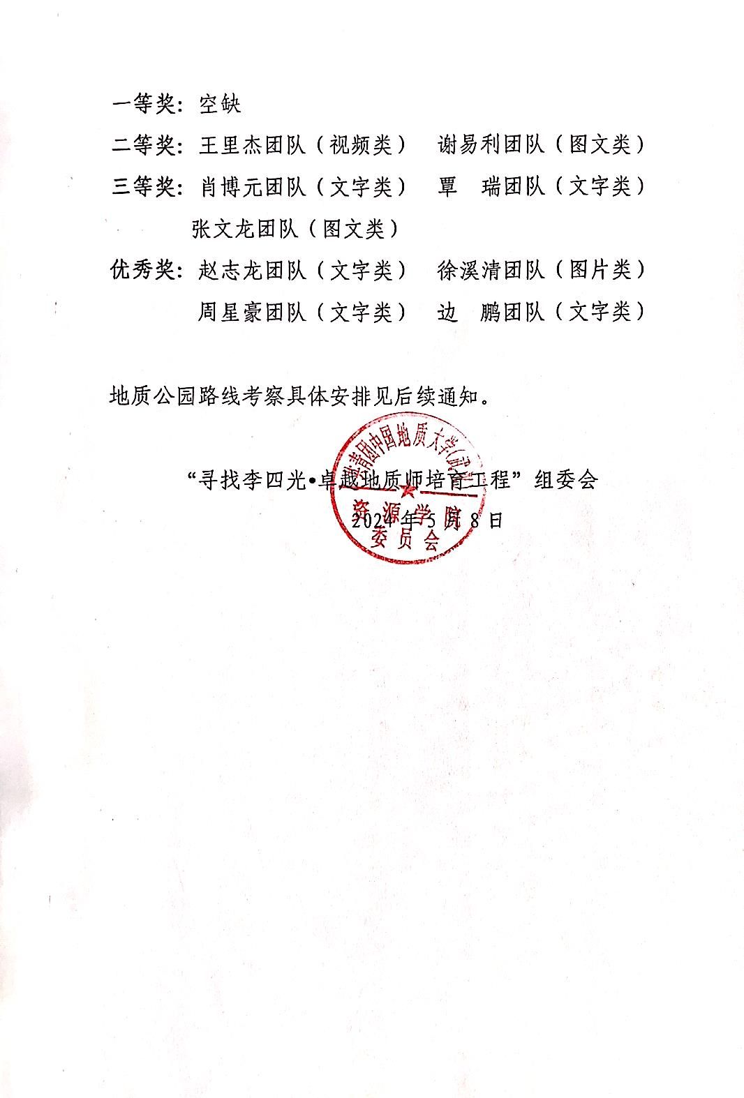 关于公布第十三期“寻找李四光•卓越地质师培育工程” 挑战营系列竞赛活动结果的通知