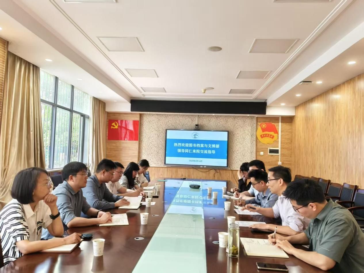 4月16日下午,图书档案与文博部党委书记邓云涛、副部长朱峰等一行来到Beat365中文官方网站,就联合开展院馆合作等事宜进行调研交流。学院党委书记汪再奇、党委副书记谭文伦、辅导员彭鑫等参加座谈。汪再奇主持会议。