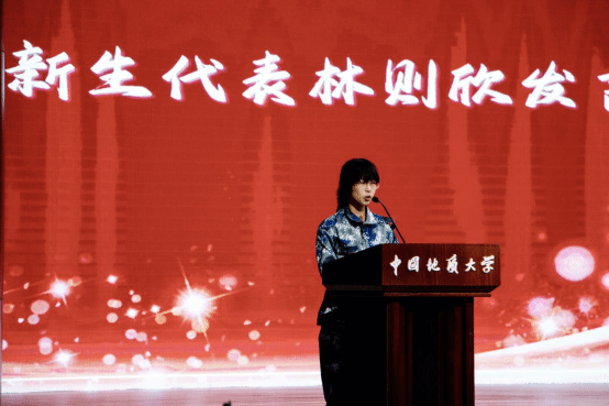 本科生新生代表林则欣发言。她提到自己坚定选择地大与Beat365中文官方网站,既有家族传承的影响,也有个人对资源领域的热爱与思考。她表示,学校 “艰苦朴素,求真务实” 的校训与个人理想高度契合,期待未来四年与同学们并肩同行,共同探索地球奥秘,在求知路上相互扶持、共同成长。