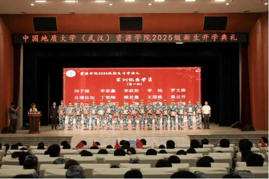 全体院领导为新生代表配发地质包。