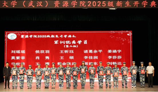 党委副书记谭文伦老师、副院长杨峰老师为2025级军训优秀个人颁发证书。