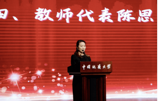 教师代表陈思发言。她指出,地球科学是一门 “读万卷书” 与 “行万里路” 紧密结合的学科。针对不同学段学生,她提出具体建议:本科生需尽快实现从被动学习到主动探索的转变,拓宽学术视野、培养批判思维;研究生要始终保持对科学问题的好奇心与专注力,在科研道路上深耕细作,以脚踏实地的态度走好大学每一步。