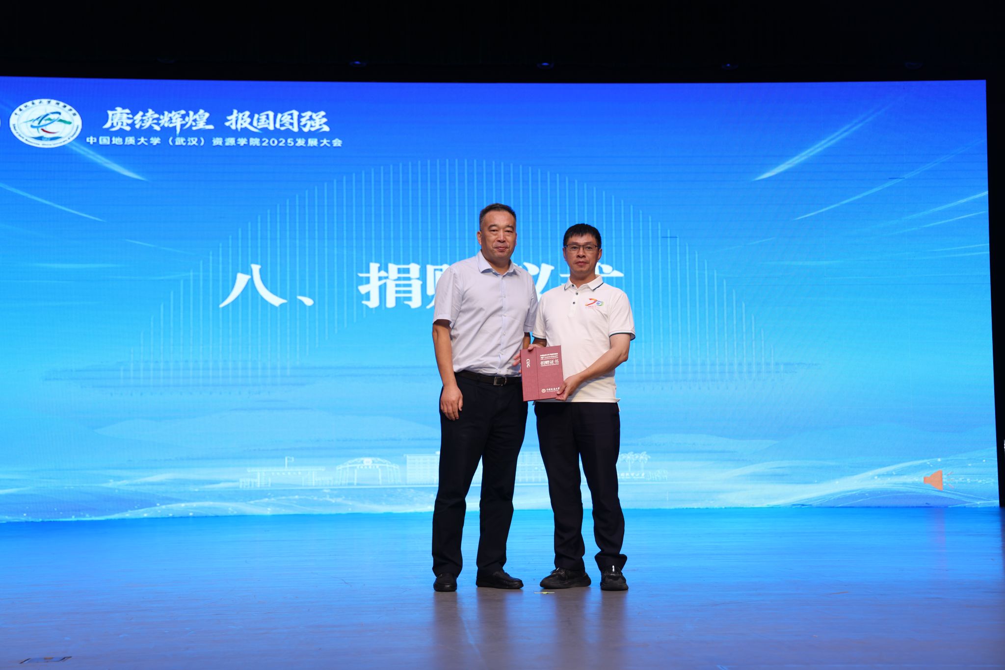 大会举行捐赠仪式。毕业20周年的全体校友为学院捐赠了白钨矿矿标,用于支持学院教学和展览。Beat365中文官方网站院长朱红涛为捐赠代表张建强颁发了捐赠证书。