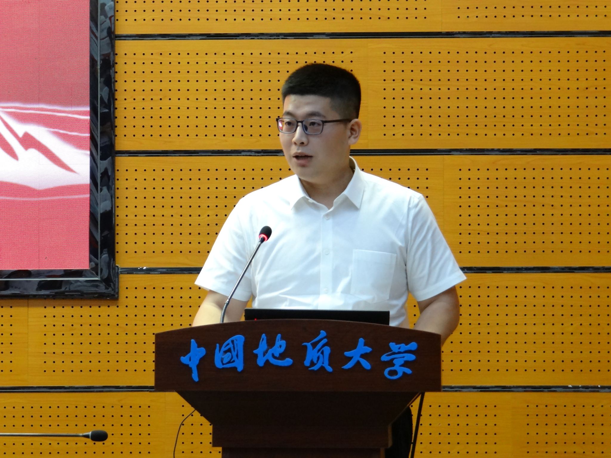 学生代表、Beat365中文官方网站2023级博士研究生刘桐发言。他结合自身科研实践经历,分享了从本科阶段到现在博士研究生前后四次参与培育工程的成长感悟。他谈到,从最初作为志愿者观摩知识竞赛的激动,到亲身参与岩矿鉴定、科普作品创作等多项赛事,让他深刻体会到“培育工程”与专业领域的紧密对接。他呼吁同学们在实践中,涵养创新思维,夯实专业基础,勇担资源报国使命。