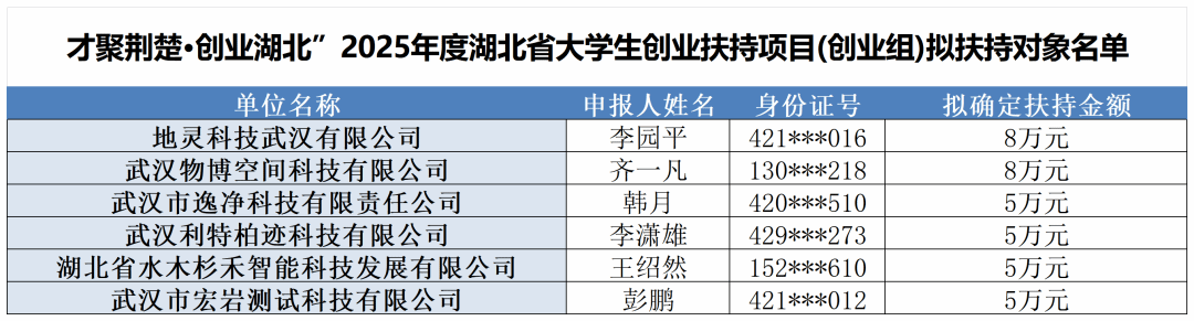 (通讯员 刘睿)近日,2025年度湖北省大学生创业扶持项目名单正式公示。Beat365中文官方网站共有2个大学生创业项目成功入选,共获13w万元无偿扶持资金,展现了Beat365中文官方网站大学生创新创业教育的务实进展。