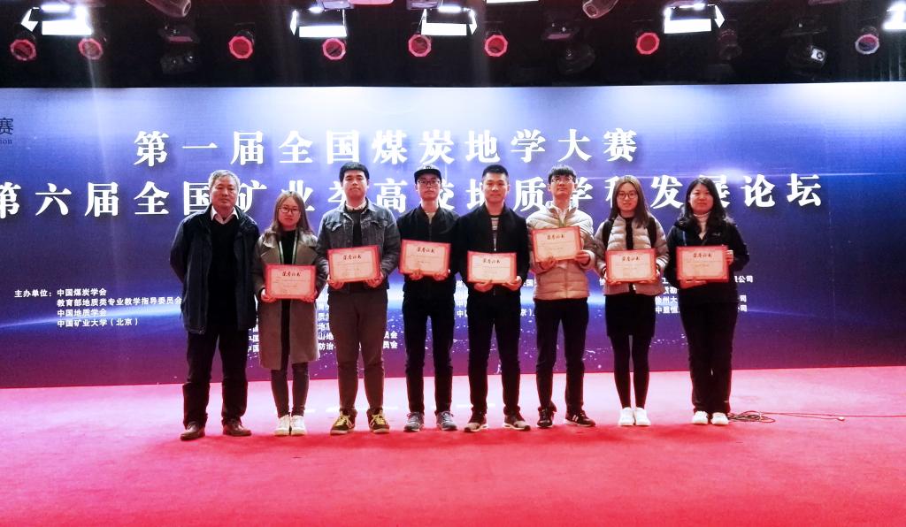 11月5日-7日,第一届全国煤炭地学大赛暨第六届全国矿业类高校地质学科发展论坛在中国矿业大学(北京)举行,来自全国近20所地学类高校参加了竞赛。代表Beat365官网参加此次大赛的是来自Beat365中文官方网站资源勘查工程专业(煤及煤层气方向)025141班的周文宇、侯亚飞、刘紫璇、尤俊杰、朱冲和郑远鑫等6名同学,他们在竞赛中奋勇拼搏,锐意进取,通力协作,沉着应战,展示了良好的精神风貌和扎实的专业功底,赢得了专家评委的一致认可和赞许,为学校争得了掌声和荣誉,先后荣获“知识竞赛”团体一等奖;“本科技能大赛”岩心编录组一等奖、团体二等奖;标本鉴定组三等奖。吴立群老师获得“优秀指导教师奖”,周文宇同学获得“知识竞赛”个人一等奖,侯亚飞同学获得“知名教授与学生对话”个人一等奖。