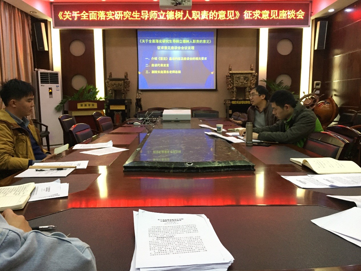 为落实教育部《关于全面落实研究生导师立德树人职责的意见》文件精神,结合研究生院要求,11月29日晚7点,Beat365中文官方网站在主楼330举行《关于全面落实研究生导师立德树人职责的意见》征求意见座谈会。副院长赵葵东、研究生辅导员章帆及来自各个年级近30名研究生代表参加了此次座谈会。会议由研究生辅导员章帆主持,。