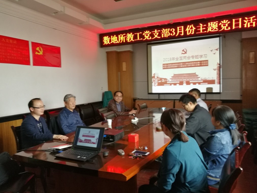 数地所支部集合相关材料回顾了2018年两会的主要内容,学习了两会在贯彻落实十九大精神、全面深化改革、决胜全面小康、宪法修改、选举、机构改革及监察立法等方面的一系列重要举措,并重点学习了2018年政府工作报告的精神,并积极探索如何深刻领会习近平新时代中国特色社会主义思想,将贯彻两会精神与工作结合起来,服务“双一流”建设。
