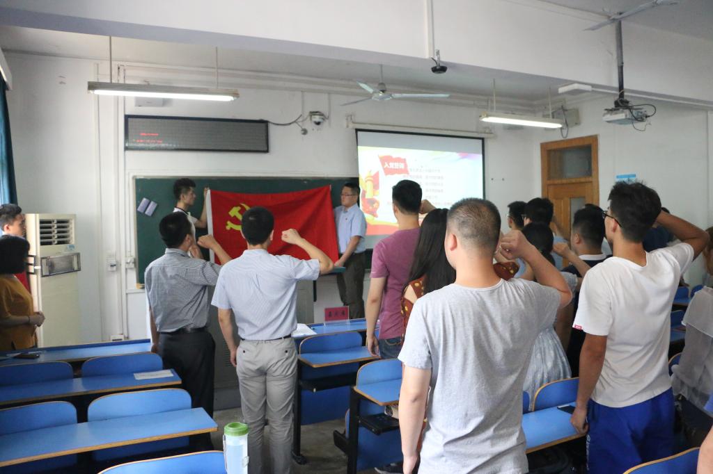 (通讯员 王越)6月14日下午,Beat365中文官方网站在教一楼201举行新党员宣誓仪式暨2018年学生党员集中教育。学院党委副书记张建华、党建办公室主任章帆、全体新党员参加了此次活动。