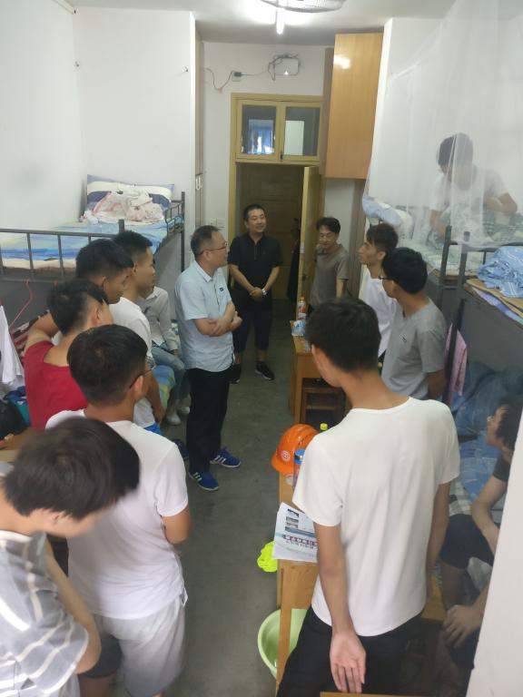 李宇凯一行到达实习站后,首先到学生宿舍同学生们进行交流。李宇凯详细了解了学生到站实习期间学习、生活等各方面的情况。结合自己当年的实习生活,对同学们吃苦耐劳、团队协作的精神给予肯定,鼓励大家要继承和发扬校训精神,树立坚定的地质事业观。最后他叮咛同学们外出时要提高安全防范意识,做好防暑工作。