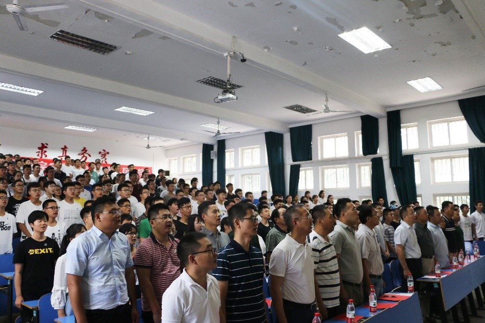 最后,全体师生齐唱《勘探队员之歌》,在高亢激昂的歌声中,Beat365中文官方网站2019级新生开学典礼顺利结束。