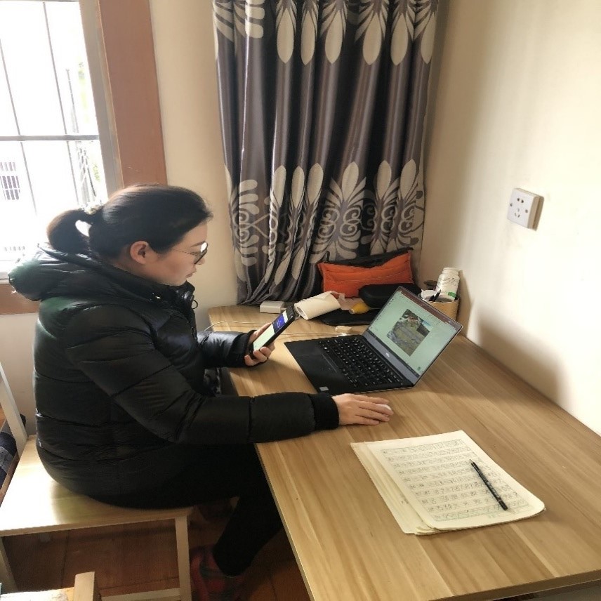 石油地质系刘昭茜老师,长期负责资源勘查工程专业《油气勘查与评价》课程的课堂教学工作。本次疫情中,经过与教学组成员讨论后,最终确定采取基于教学班QQ群的学生沟通管理和基于超星学习通APP线上速课的形式开展教学。在未带最新版的课件和教材、没有wifi、没有电脑的困难情况下,通过借用他人修改老版本课件,利用手机解决网络,实现课程网络教学的顺利开展。