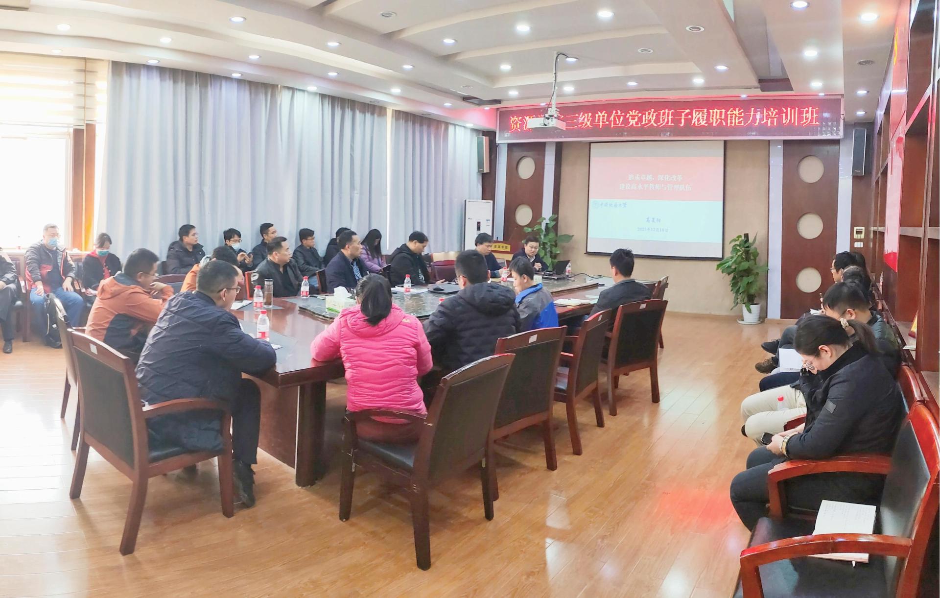 12月10日下午,Beat365中文官方网站三级单位党政班子履职能力培训班第二期培训在主楼330会议室进行。学院党委书记高复阳、副院长朱红涛分别授课,各三级单位党政班子成员及院直全体人员参加培训。