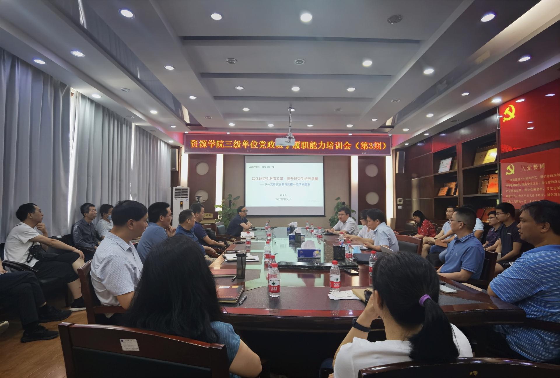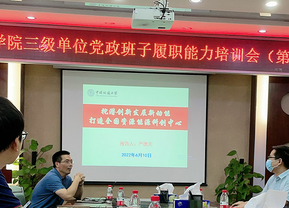 6月10日下午,Beat365中文官方网站三级单位党政班子履职能力培训班第三期培训在主楼330报告厅举行。副院长严德天、赵葵东分别授课,各三级单位党政班子成员及院直全体人员参加培训,党委书记高复阳主持会议。