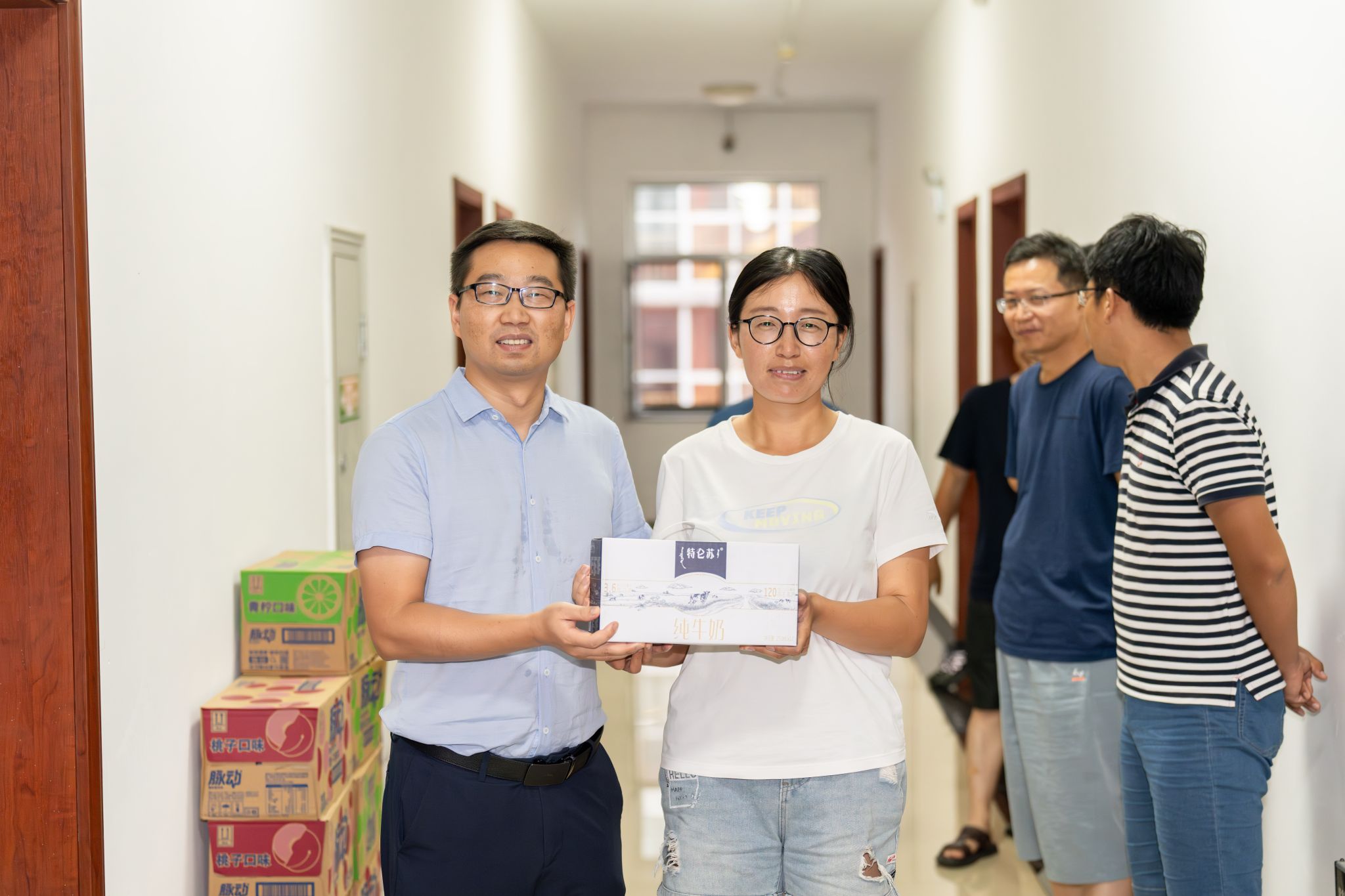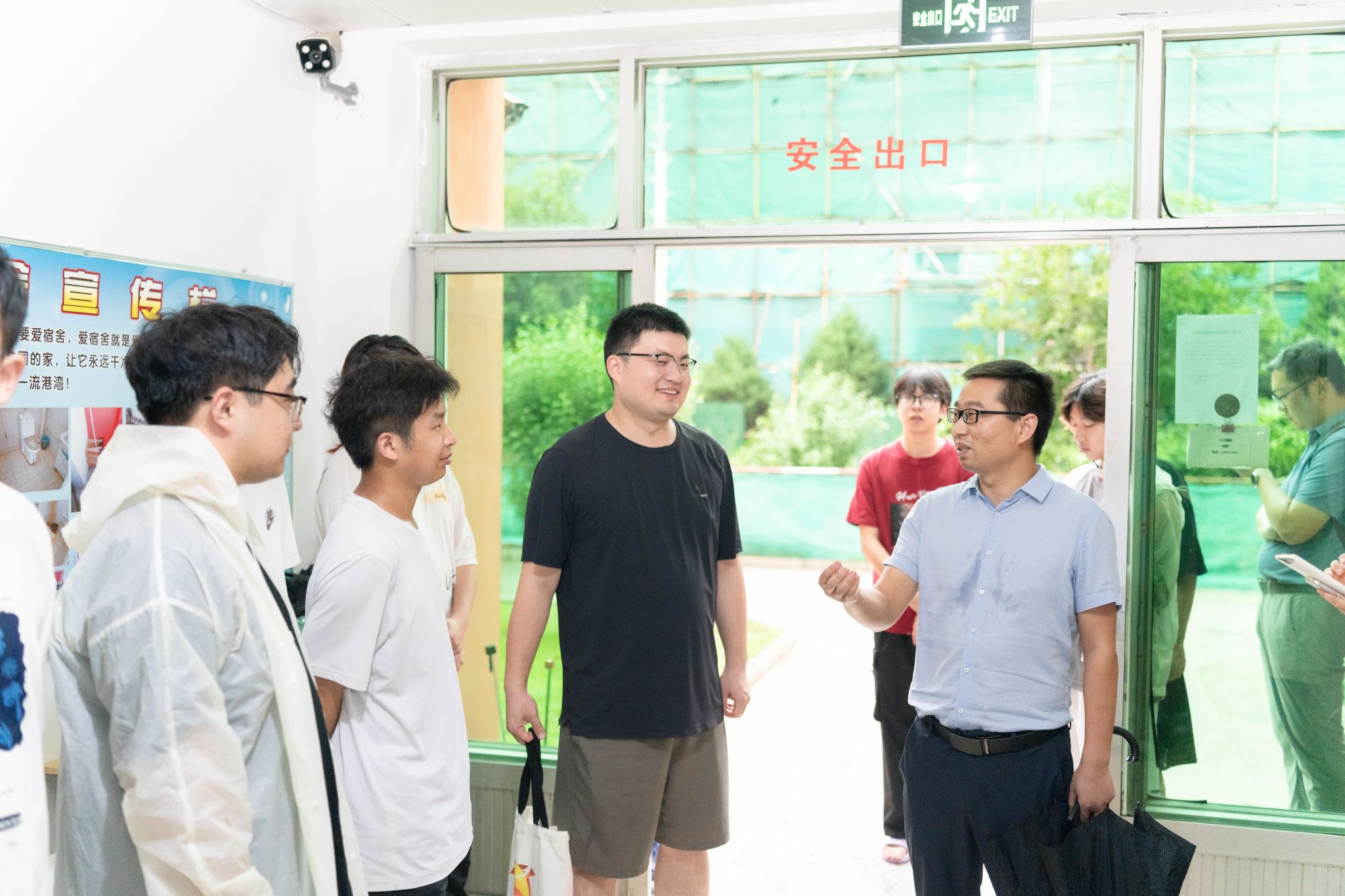 在学生公寓大厅,谭文伦为同学们发放消暑慰问品。他询问了同学们的食宿情况和实习体验,提醒实习期间要注意个人身体状况,希望同学们重视实践探究能力的锻炼,勇于提问、善于提问,在提问求证中将书本理论迁移至野外地质现象中,打好专业基础,浓厚专业兴趣。