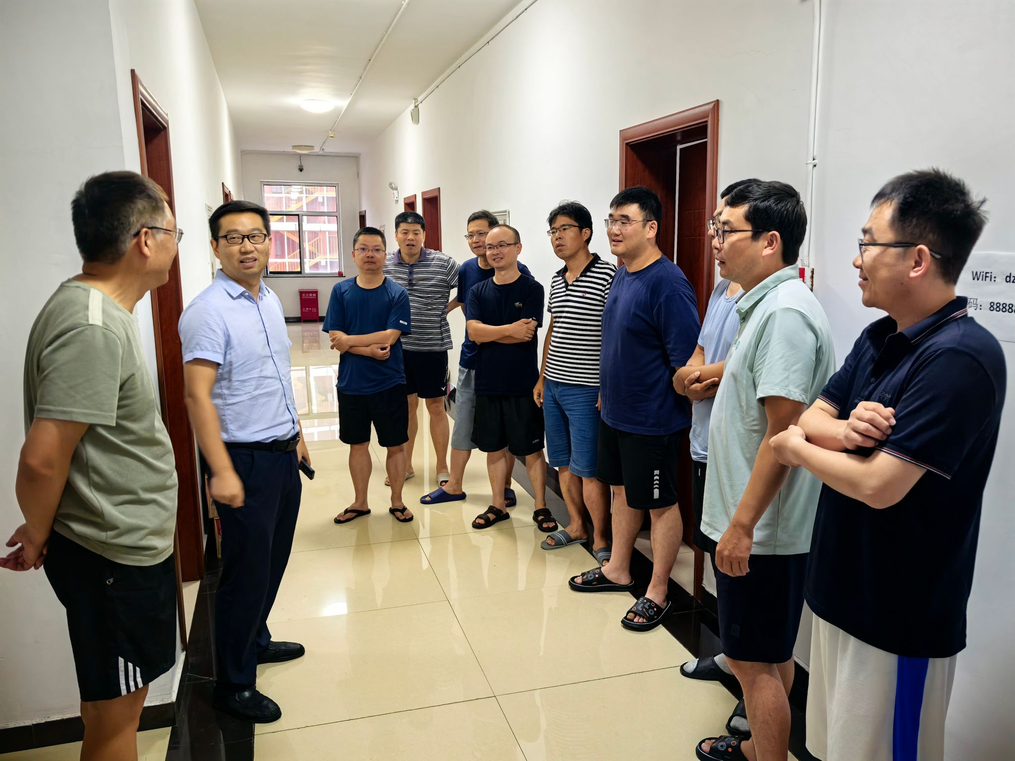 谭文伦一行先来到教师公寓看望慰问实习教学团队教师。他与老师们热情交谈,了解出野路线、教学情况和实习进展,代表学院向辛苦备课、认真教学的老师们表示肯定和感谢。在了解北戴河近期多变的天气后,他叮嘱教学团队要时刻紧绷实习安全这根弦,稳妥完成后续教学任务,让学生在安全有序、寓教于乐的实践学习中扎实野外地质工作基础。